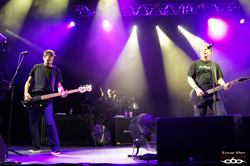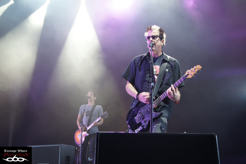 Mercredi 7 Septembre, Offspring débarque sur nos terres. Je ne sais pas trop à quoi m’attendre, les ayant vu une première fois dans ma période Teenager je me prépare psychologiquement à faire un come-back intense ! C’est dans ce lieu d’exception, le théâtre Antique de Vienne, que les Californiens ont décidés de faire leur show. Après 45 minutes de négociation pour qu’enfin on retrouve le nom de Pavillon 666 dans les Pass photos, c’est avec une grande déception que je rate les premiers morceaux de Simple plan. Non, en fait ce groupe n’avait rien à montrer autant scéniquement que musicalement. Je rejoins donc les amis photographes en dehors du théâtre pour une grande partie de rigolade. En effet, nous étions obligés d’attendre en dehors et donc aucune possibilité de prendre des photos. Ce qui apparemment n’a embêté personne ! 21h sonne et nous nous plaçons enfin devant la scène afin de découvrir le spectacle. Offspring arrive et les Américains ont plus que la forme. Ce groupe a toujours été quelque peu critiqué par ses prestances scéniques mais ce qu’on peut voir ce soir est au-delà de nos espérances. Tout d’abord le cadre est idyllique, ce lieu est un effet un endroit incroyable pour les groupes. La musique prend un autre sens et une autre dimension. De plus, il est assez rempli (plus de 5000 personnes). Le public est déchaîné et très réceptif. Offspring a en plus vraiment envie de nous fait plaisir ce soir en nous interprétant des bons vieux titres, plus que les derniers nouveaux un peu fade. Nos adolescents d’un soir pourront donc jumper sur des très bons titres comme Come Out and Play (Keep 'Em Separated), Americana ou Bad Habit. Le groupe montre une très grande énergie, Noodles nous répète à plusieurs reprises que cet endroit est juste magnifique. Les Américains ont certes pris un coup de vieux, mais nous prouvent qu’ils ont quand même marqués l’histoire de la musique avec leurs titres Punk Californiens. Aucune arrogance sur scène, le groupe est simple et efficace. La prestation scénique de ce soir contredit tout ce qui a pu être dit de mauvais les concernant de ce point de vue. Offspring enchaîne les titres sans oublier de communiquer avec son public qui est ce soir au maximum de sa forme. Dexter Holland a une très bonne voix ce soir, tout est donc au rendez-vous ce soir pour passer une très bonne soirée. Le public chante en cœur sur des titres comme Why Don't You Get a Job? devenu aujourd’hui malgré tout incontournable. Peut-être légèrement décue personnellement de ne pas avoir entendu un petit « Dirty Magic ». Le show passe a la vitesse de l’éclair. Le public est déchaîné ce soir, et après 3 rappels, Original Prankster /Want You Bad /Self Esteem, Offspring nous dit généreusement au revoir en n’oubliant pas de balancer des petits cadeaux pour les fans (médiators, baguettes) et nous quitte donc après environ 1h30 de concert. Pour conclure, ce show fut une belle surprise. Le sourire était sur toutes les lèvres. Je pense ne pas avoir été la seule à ressortir par la suite mes bons vieux albums de ce groupe.