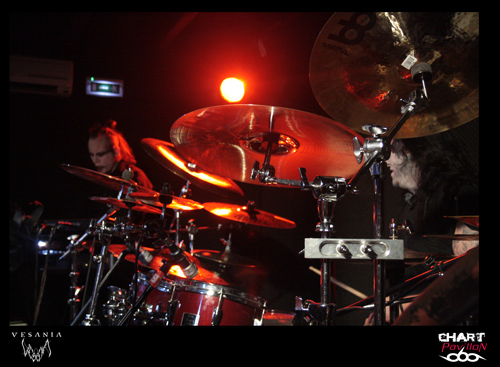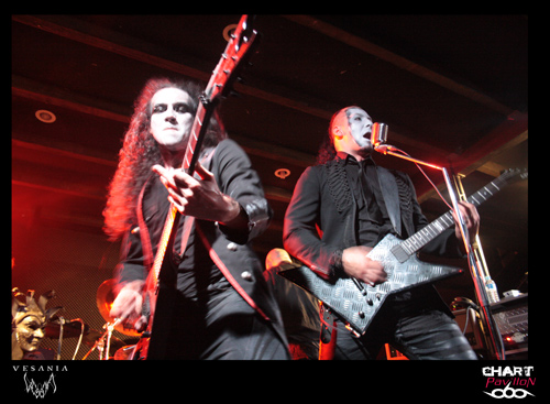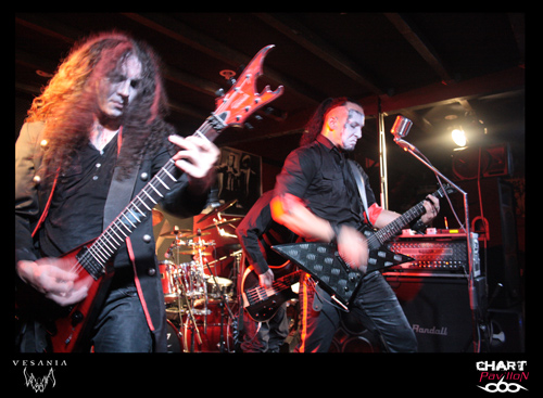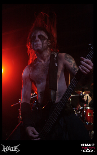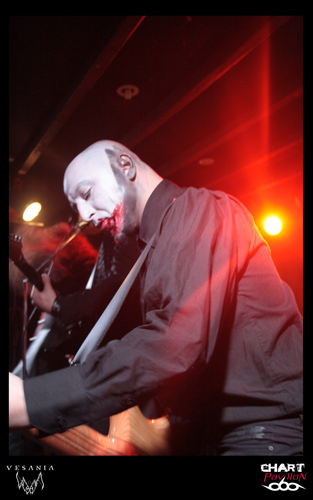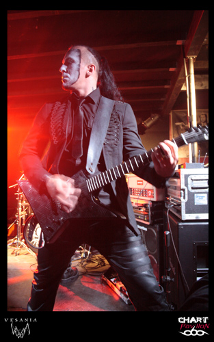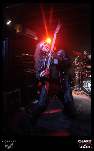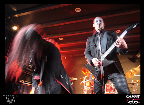 Une heure d'attente avant que le quintette polonais VESANIA monte sur scène. Leurs compatriotes de HATE avaient été, officiellement, retardés sur la route par un incident technique. Bref, nous sommes en retard, et cela se sent. A 22h 30, les colosses de Varsovie, eux aussi en tenue noire, entament enfin leur set. Orion, le chanteur, prononce quelques mots en anglais, à peine compréhensibles, mais exprimant une certaine insatisfaction. Cette formation de black metal symphonique, fondée en 1997, est dotée de claviers (Siegmar en est le titulaire) , chaque musicien a le visage plus ou moins grimé, on aperçoit même du "sang" couler le long du cou de l'un d'eux. Le visuel et les jeux de scène font largement partie du spectacle. Orion, le chanteur, impressionnant à tous égards, est aussi le bassiste de BEHEMOTH, Heinrich, le bassiste hors pair, officie aussi chez DECAPITATED, et Daray, le batteur, chez DIMMU BORGIR, après avoir exercé ses talents chez VADER ! Ils ont bien entendu plusieurs albums à leur actif et des milliers de kilomètres de tournées en Europe (Scandinavie, Russie, Europe Centrale). Et nous assistons ce soir à une grand' messe de black metal, avec en prime un (assez bref) solo de batterie. On s'accorde quelques instants de respiration, on reprend, on accélère le tempo, le clavier, bien audible, ajoute une note originale à l'ensemble, qui reste néanmoins lourd par moments. On notera que le son a parfois laissé à désirer...Ce qui n'a pas perturbé les amateurs de headbanging, qui auront pu pratiquer leur "sport favori" durant environ 40 minutes. Froid et sombre par définition, le set de VESANIA fut finalement d'un bon niveau technique, mais le cœur n'y était pas, me semble-t-il.