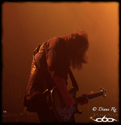 C’est le groupe suédois April Divine qui ouvre la soirée, et rien ne laisserait deviner leur nationalité –ou le fait qu’ils s’appelaient autrefois Starfuck and Bloody April, tout un programme-. En live en tout cas, le style fait très rock US efficace et peu innovant, du genre mainstream à la Simple Plan. Agréable pour une petite demi-heure donc, mais rien de transcendant ni de mémorable, même si le bassiste aux longues dreads et le guitariste étaient expressifs et communicatifs.