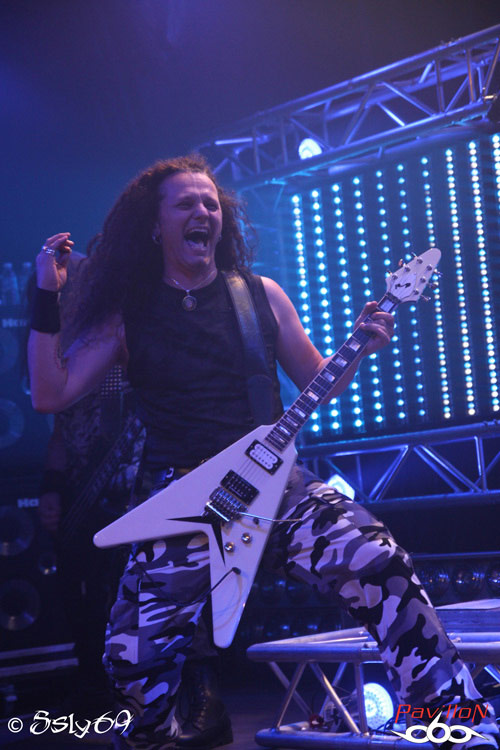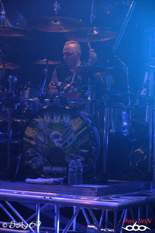 U.D.O. Pour beaucoup, c'est avant tout Udo Dirkschneider, connu en tant que membre fondateu et ancien chanteur d'ACCEPT, groupe pour lequel il saura encore nous montrer son attachement ce soir, avec pas moins de cinq titres de la formation dans la set list. Ce sera tout de même étonnant, le dernier bébé du groupe n'étant lui représenté que pas troix chansons, dont une excellente introduction à base de "Rev-Raptor", alors qu'entre temps la salle a eu le temps de se remplir. Ces anciens du Heavy ont encore de quoi séduire, avec des sorties d'album qui restent fréquentes, et un line up qui tient maintenant depuis plus de sept ans, Francesco Jovino étant le membre le plus récent du groupe. C'est avec "Dominator" tiré de l'album du même nom que les festivités vont continuer, Le groupe se montre rapidement en pleine forme, et nous laisse penser que nous allons passer un excellent moment. On aura droit ce soir à un gros solo de batterie qui fera son effet, suivi d'un passage dans le public (ou plutôt d'un tour de salle) d'Igor, ce qui ravira les fans, et les derniers morceaux recevront encore un excellent accueil. Les deux derniers étant "Metal Heart", et pour cloturer le titre culte "Balls to the wall", on se rendra compte que nombreux sont les nostalgiques de l'époque ou Udo était encore chanteur d'ACCEPT. Bien qu'en soi, U.D.O. soit un groupe bien perçu par le public, et que le groupe après près de 25 ans d'activité arrive encore à nous offrir des concerts d'une durée plus qu'honorable de près de deux heures, c'est toujours un plaisir de voir les allemands jouer en France.