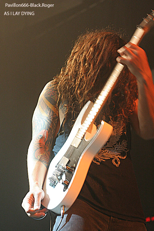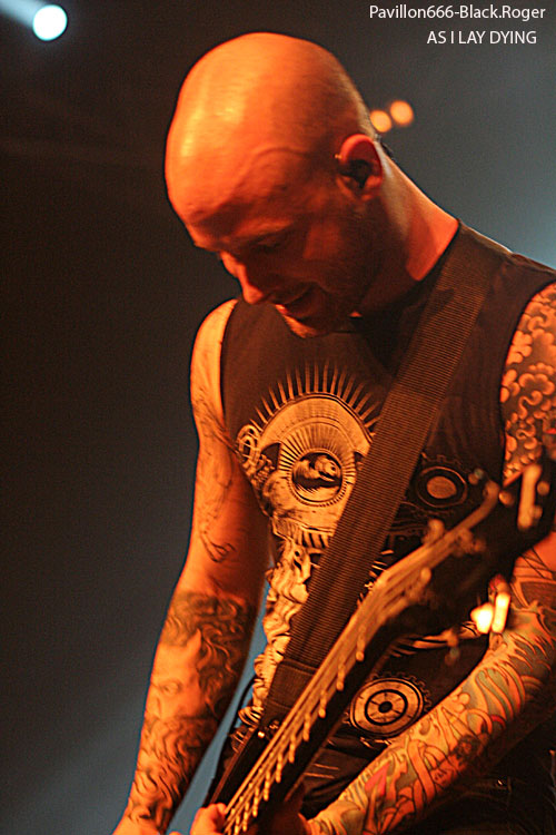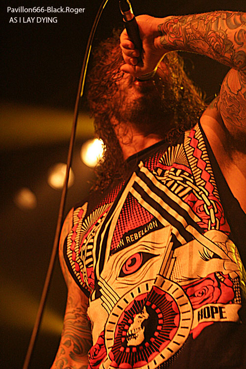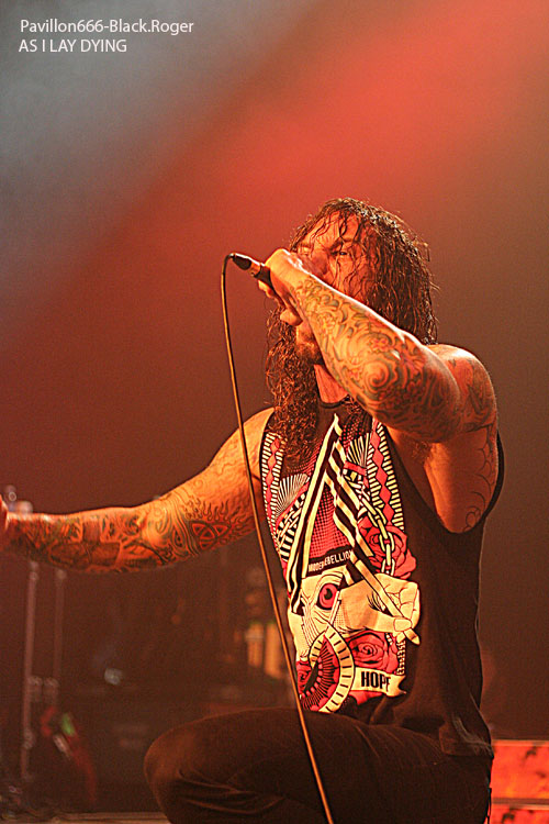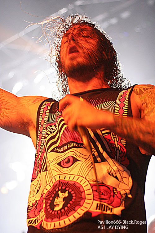 Ce sont ensuite les américains d’AS I LAY DYING qui ont le privilège de monter sur cette scène du Fil. Il y a de quoi être tout de même être surpris de cette présence sur cette tournée de ce groupe plutôt typé hardcore. Mais, cela a un avantage conséquent, celui de brasser les publics. En effet, certaines personnes sont venues pour AMON AMARTH en priorité tandis que d’autres sont là pour ce groupe. Ce sont deux scènes qui sont assez différentes en apparence et qui ne communiquent par vraiment en règle générale. Au moins, avec une telle affiche, certains feront l’effort de rester pour assister aux deux prestations ce qui ne peut être que positif. La prestation d’AS I LAY DYING est forcément puissante et énergique. Le groupe se donne à 100% dans ce qu’il fait et son dynamisme est forcément communicatif. Le public commence réellement à s’investir dans le concert et le mosh-pit prend de l’ampleur. On aura même droit à un wall of death en fin de set.
