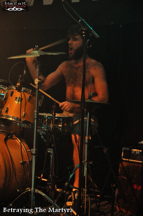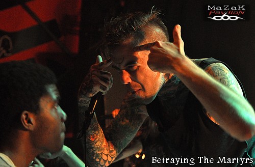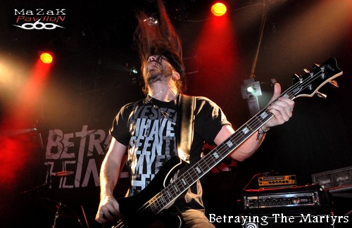 C’est en pleine semaine de “cataclysme” pluvial qu’a lieu en centre ville l’un des concerts de la tournée de BETRAYING THE MARTYRS ! Non seulement le climat n’est pas de la partie mais la communication précédent l’événement s’est faite des plus discrètes (peu d’affichage et seul les plus férus du style semblaient être au courant) n’attirant qu’un public restreint. Cependant l’Antirouille reste la salle idéale pour ce genre de concerts : bien située, à dimension humaine, conviviale, une scène et des éclairages corrects, une sonorisation plutôt potable, des tarifs attractifs… bref, un endroit bien sympathique pour se détendre les esgourdes !