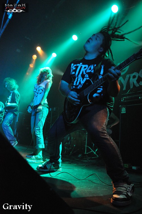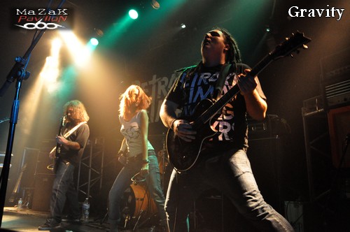Après une paire de gifles on s’attend souvent à un bon coup de boule dans les gencives! Malheureusement, GRAVITY malgré toute sa bonne foi et son enthousiasme ne parviendra pas à détrôner ses collègues précédents. Il faut dire que la tâche n’était pas aisée. Le groupe est loin d’être mauvais, bien au contraire, mais son côté « amateur » et sa touche « je me cherche » rendent les choses parfois difficiles. La chanteuse alterne growls et tentatives de vocalises lyriques pas toujours convaincantes, les compos en quête d’originalité embrouillent plus qu’elles ne convainquent… Vraiment dommage ! le potentiel est là, l’attitude aussi !