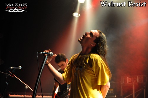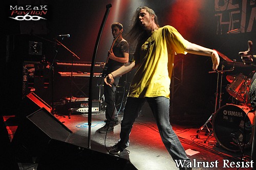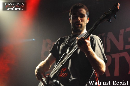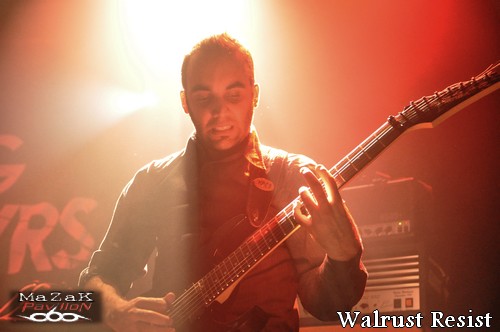 Pour débuter cette soirée, les Montpelliérains de WALRUS RESIST vont faire bonne impression. Même si l’auditoire parait riquiqui, il semble tout acquis au modernisme et l’originalité du combo. Dans une veine thrash-metal moderne, alambiqué et haché, le groupe gère son sujet. Très à l’aise sur scène et dans l’exécution de ses titres, le combo sort du lot : attitude simple mais efficace, titres chiadés mais pas chiants, musicos au taquet… Le vocaliste possède des petits airs à la Mike Patton période 90’s (quand celui-ci arborait une crinière qu’il secouait vigoureusement et tendait les bras comme « zombifié » qu’il était). Mention spéciale pour le bassiste qui maîtrise l’instrument de manière viscérale (comprenez « alternance de slap improbables et de lignes audacieuses »). Une première partie qui confirme tout le bien que l’on peut penser de WALRUS RESIST.