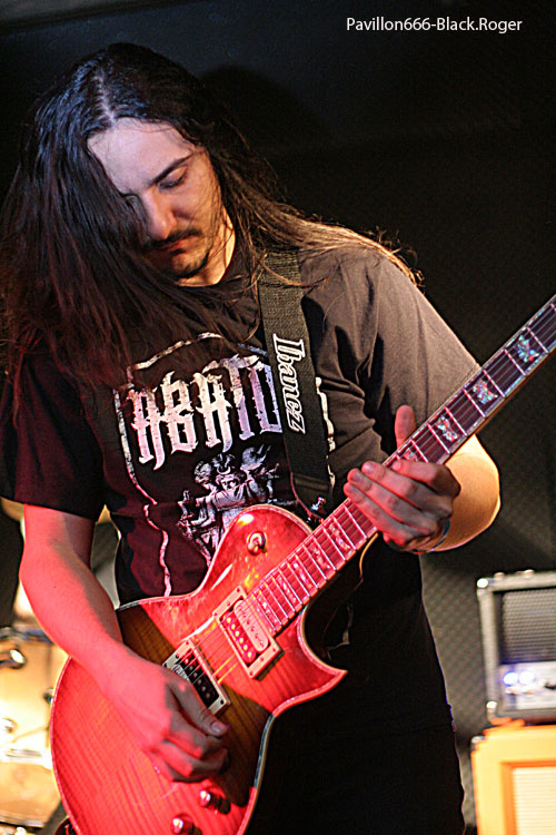 La soirée sombre et glauque peut donc commencer quelque part entre 20 heures et 20 heures 30 avec donc ABATON et don black/down tempo se délivrant dans un brouillard épais. Nous distinguons à peine les membres du groupe dont ma particularité est la présence de deux chanteurs encapuchonnés, l’un devant la scène, l’autre faisant face au batteur, l’ensemble faisant penser à une croix. Le quintette surprend de par ses compositions bien doom, bien sombres, bien occultes. Le combo nous présente notamment des titres de son premier album « Hecate » paru en septembre dernier. Bien que de formation récente (2010), le groupe transalpin étonne par une certaine maturité et une certaine présence scénique de qualité. On adhère pleinement à leur démarche et leur set sera vraiment une bonne découverte.