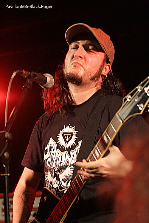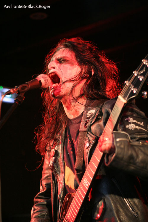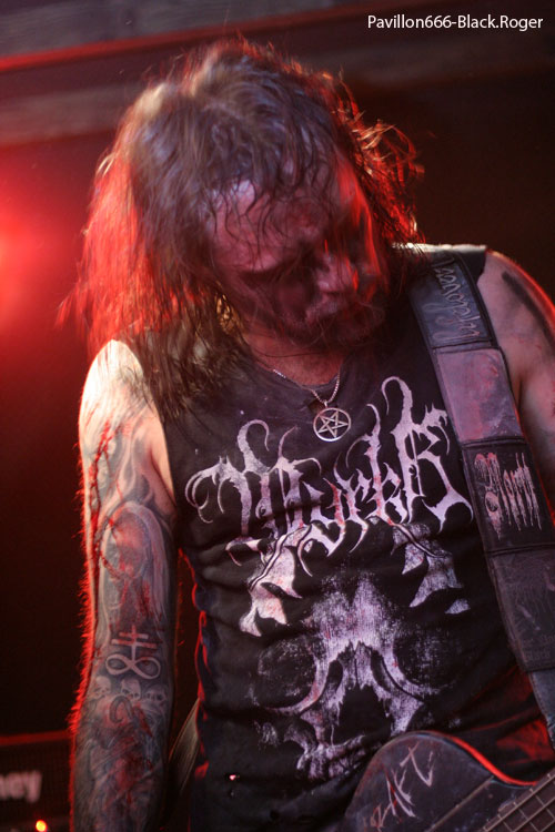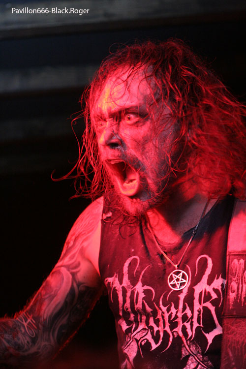 Il est temps maintenant d’apprécier la venue des italiens de FORGOTTEN TOMB, qui ne sont pas longs à s’installer devant nous. Si, au départ de l’aventure, il y a une douzaine d’années, Herr Morbid nous faisait plonger dans une marée noire suicidaire sur des tempos lents et lourds, aujourd’hui, surtout avec leur nouvel et excellent album « Under Saturn Retrograde », le quatuor semble avoir mis de l’eau dans son sang noir. En effet, depuis quelques années, la musique délivrée par le groupe s’est enrichie de nouvelles déviances telles que le rock et le punk. Et, sur scène, le résultat est assez frappant de nouveauté. Exit les ombres mortelles au fond du couloir de la mort, et bienvenue aux titres qui « envoient » avec un herr Morbid coiffé d’une casquette au « look » un peu hardcore ! Mais nous n’accuserons pas FPRGOTTEN TOMB de trahison dans la sphère black-métal, car les transalpins ont su conserver de purs diamants de métal sombre insérés dans une parure live plus vivante que jamais. Et le résultat est sans appel, ce soir l’ambiance en est à son comble, le nombreux public fait corps avec ce combo maintenant au bord de l’appellation culte où légendaire, c’est sans appel.
