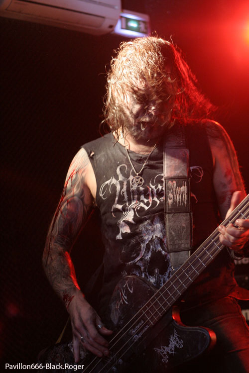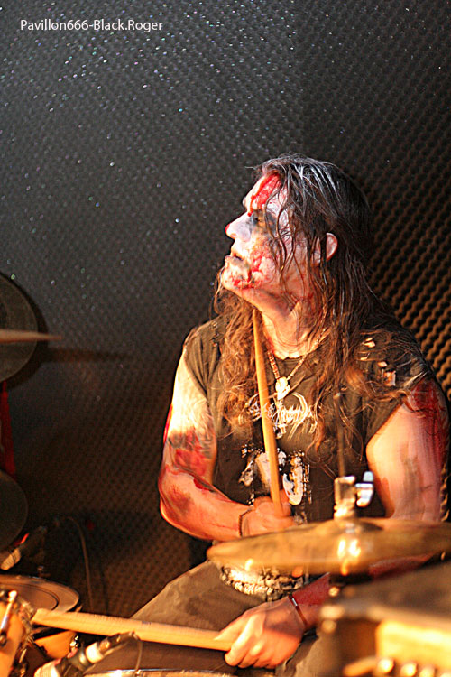 NOCTURNAL DEPRESSION ne va pas faire retomber l’intérêt de la soirée, c’est certain. Les grenoblois se lancent dans la bataille avec corpse-paints pour renforcer leur prestation scénique. Et quelle présence ! ici les compositions de leur dernier opus « The Cult of Negation » prennent toute leur ampleur. Depuis 2004, le groupe sème sur son passage la folie « doomesque » d’un black-métal prenant, tantôt lourd et plombé, tantôt rapide et agressif. Seconde fois que j’assiste à un concert de cette entité »noire et il me semble que les grenoblois ont prit de l’ampleur par rapport au set donné au CCO de Lyon en Septembre 2009 en première partie de NARGAROTH. Le black dépressif de NOCTURNAL DEPRESSION fait bien la part des choses en live, c’est-à-dire que les titres en mid-tempo sont resituée avec un bon son eu coup, où il n’y aurait pu avoir que noirceur ambiante, on se retrouve avec un certain « groove » de bon aloi. Que dire de plus ? Que cette prestation fut bien accueillie à voir l’ambiance dans le public, que le groupe a marqué encore des points en live, et que le show fut puissant, varié, et au final excellent.