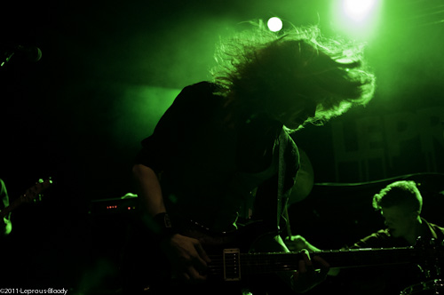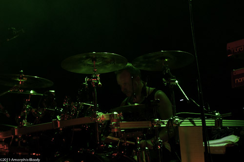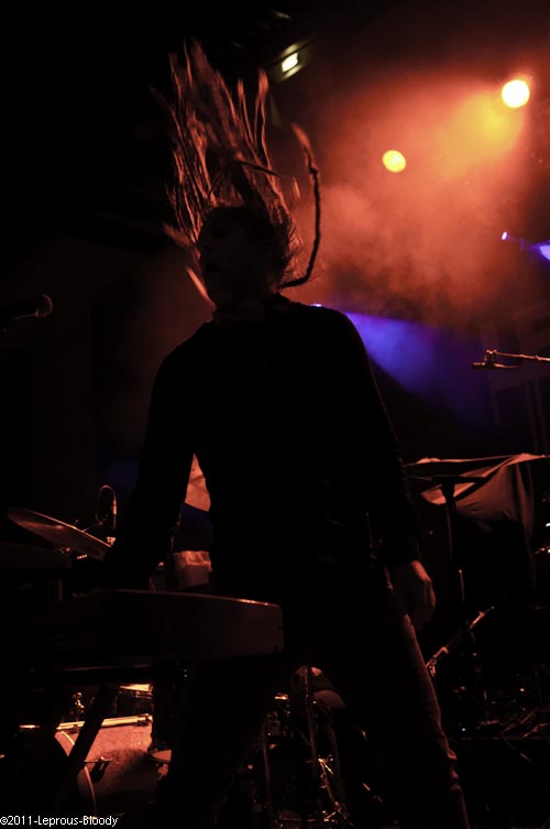 Changement de plateau avec les Norvegiens de Leprous. Déjà connu par une poignée des spectateurs ce soir car le groupe était venu accompagner Therion à Toulouse l'an passé, Leprous arrive donc en territoire acquis du moins pour ceux qui les avaient vus l'an passé. Pour les sceptiques, Leprous ne va pas passer par quatre chemin pour nous prouver combien leur metal est excellent. Oubliez la prestation d'avant et faites place à une veritable tornade Norvegiènne. Avec la sorti de "Bilateral" les Leprous ne sont toujours pas calmé. Durant leur set, quelques excursions sur leur dernier mefait vont être faites et vont nous prouver que ces jeunes gens n'ont toujours pas décidé de faire dans les ballades mielleuses. Riffing saccadé, et autres changement de mesures sont les rois chez Leprous. Style loin d'être facilemnt classifiable, très dur à apprécier sur cd, ce dernier trouve chaussure à son pied en live. L'énergie déployée le long du set sera le summum de la soirée ! Même Amorphis ne fera pas mieux ! Prenez "Thorn" ou encore "Mb. Indifferantia" et vous sentirez une subite envie d'aller courir au merch pour acheter ce petit bijou. Parce qu'en plus de jouer une musique ultra nerveuse, les membres eux mêmes sont aussi très nerveux et n'arrêtent pas de bouger sans cesse quitte à se rater quelques paroles. On pensera notamment au chanteur/clavièriste qui se donne à fond en balayant avec ses cheveux son pauvre clavier. Au bout de 30 minutes, Leprous laisse le public dans un état second. Les lumières se rallument, les esprits sont fumeux et le même questionnement nous taraude : Que c'est t'il passé ? Leprous vient de nous infliger une belle baffe.