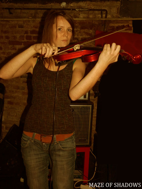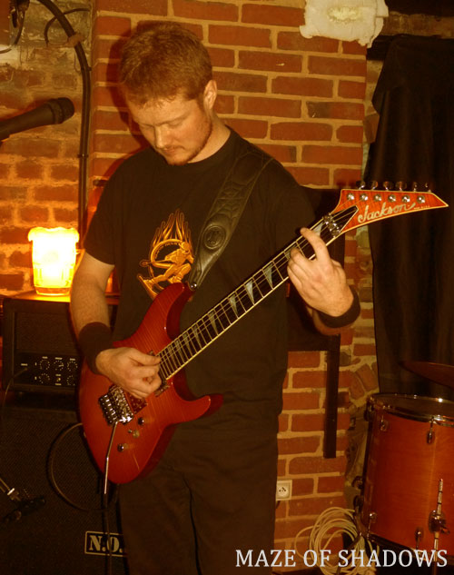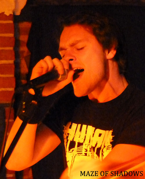 Maze of shadows a ainsi la bonne surprise de débuter la soirée devant une foule non négligeable. Les quelques vannes à propos du retard du batteur (pour cause de stress ou de bière ? ) détendent l'atmosphère, un fait bienvenu pour encourager un groupe tout nouvellement arrivé sur les planches. Les musiciens restent chacun très concentrés sur leurs instruments respectifs et proposent un heavy/power metal léger et entrainant. Bien sûr, le set n'est pas exempt de quelques imprécisions et imperfections, mais qui finalement pèsent peu puisque les musiciens ont visiblement beaucoup répété et bien préparé l'évènement. Maze of Shadows met alors en valeur deux gros points positifs : premièrement la présence d'un chant clair agréable maitrisé, jamais criard, bien qu'un peu limité dans les très aigus ainsi qu'en terme de puissance et deuxièmement l'utilisation d'une violoniste. Plus qu'un simple agrément, le violon est effectivement ici membre à part entière, parfaitement intégré dans les compositions, bel exemple d'originalité et d'intelligence de composition. Si le show manque encore un peu d'assurance et de puissance, Maze of shadows est l'exemple typique d'un groupe à fort potentiel qui ne tardera pas à se lâcher davantage et s'exprimer pleinement à force de travail et de concerts. A suivre donc, et à encourager.