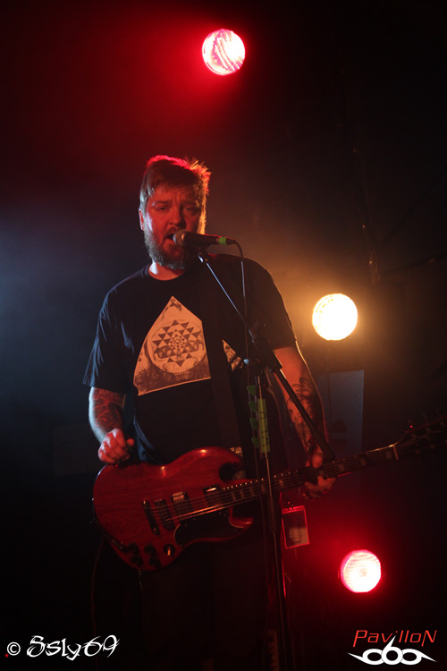 S'en suit la venue de KVELERTAK, groupe encore jeune, avec à peine quatre ans d'existence, une démo, et seul et unique album au compteur, on peut se demander comment se groupe s'est trouvé en tête d'affiche. Et j'ai envie de répondre avec du talent, ce groupe a su se faire remarquer lors de ses précédents concerts, et a aussi eu l'occasion de prêter un de ses titres au film norvegien "Troll hunter". Leur énergie scénique, et leur metal teinté de punk, de black et de riffs aux quelques sonorités seventies ont cet effet de prendre le pas sur toutes les appréhensions qui peuvent jaillir au premier abord. On se retrouvera donc dans un concert bien rodé, avec un groupe qui comme tous les autres ce soir arrivera à communiquer avec le public présent. Et les débordements feront partie intégrante du set, on pensera au guitariste qui ira de sa préstation en se faufilant dans le public pour aller jouer sur le bar, mais surtout à ce pied de micro lancé au hasard, et qui aura le malheur d'attérir en pleine tête d'une spectatrice.