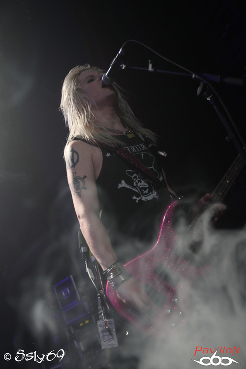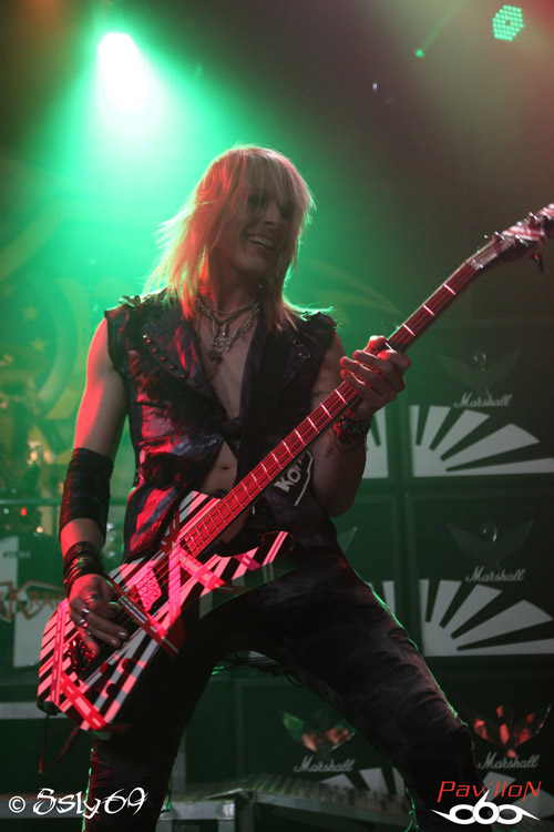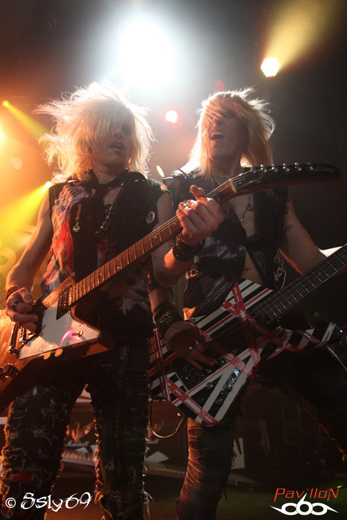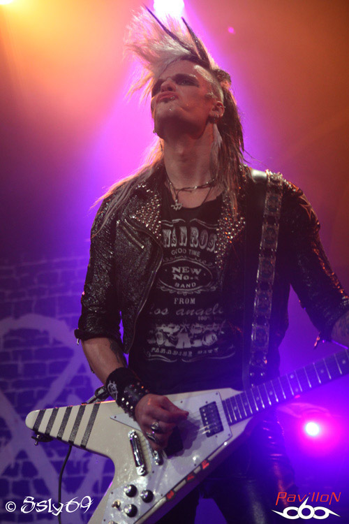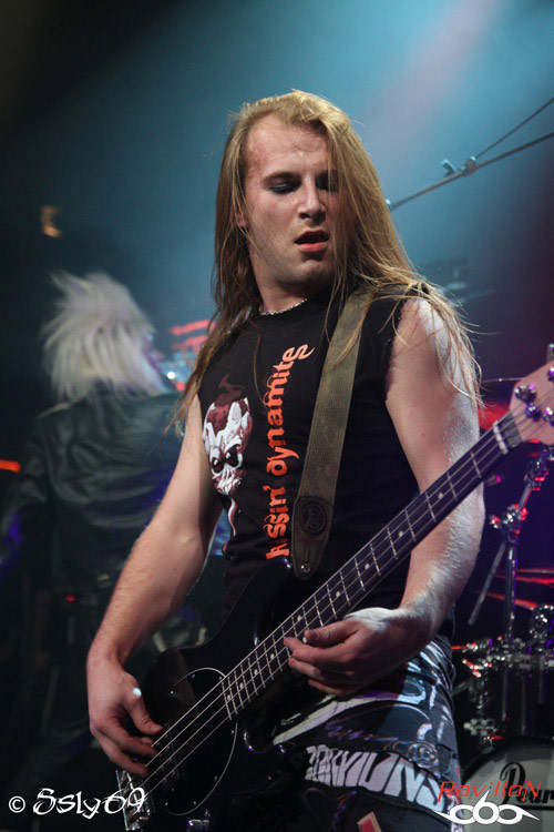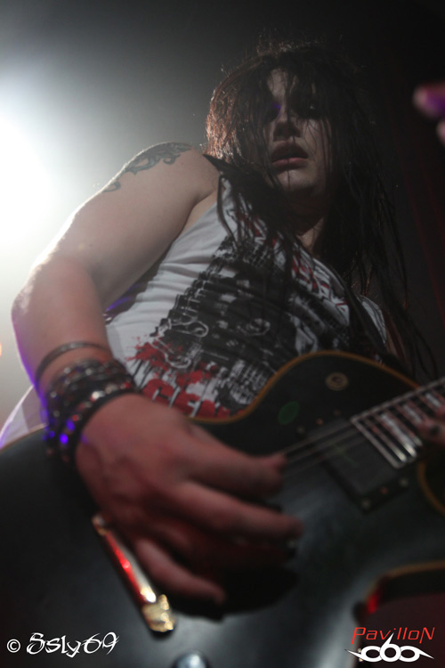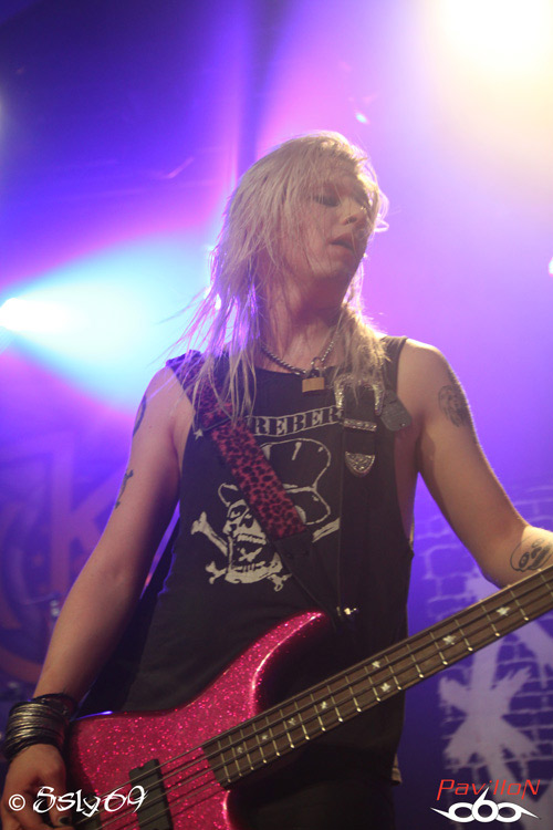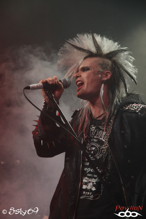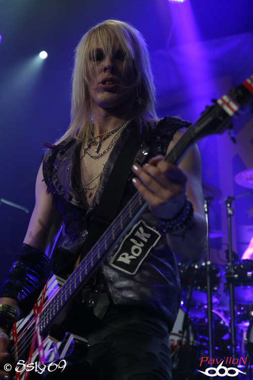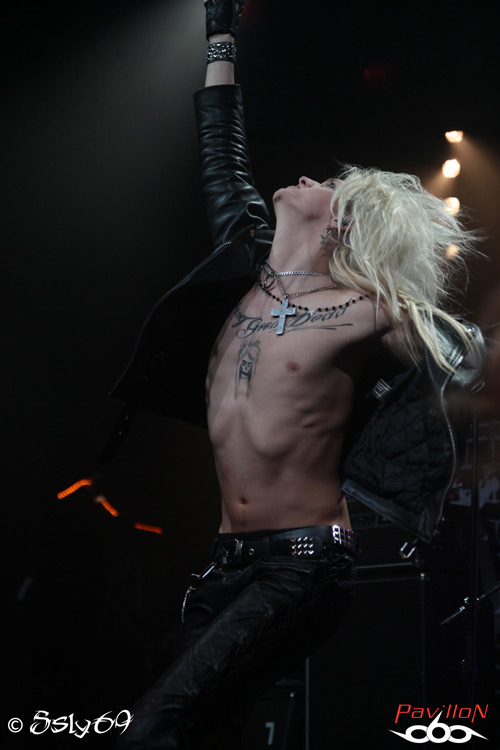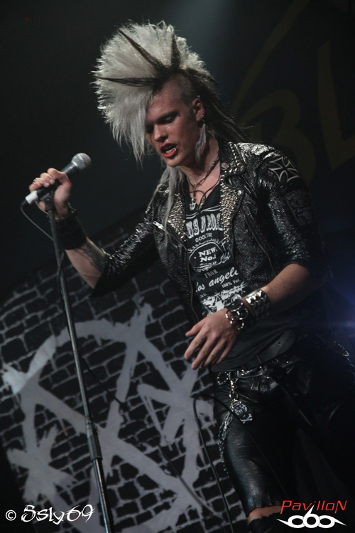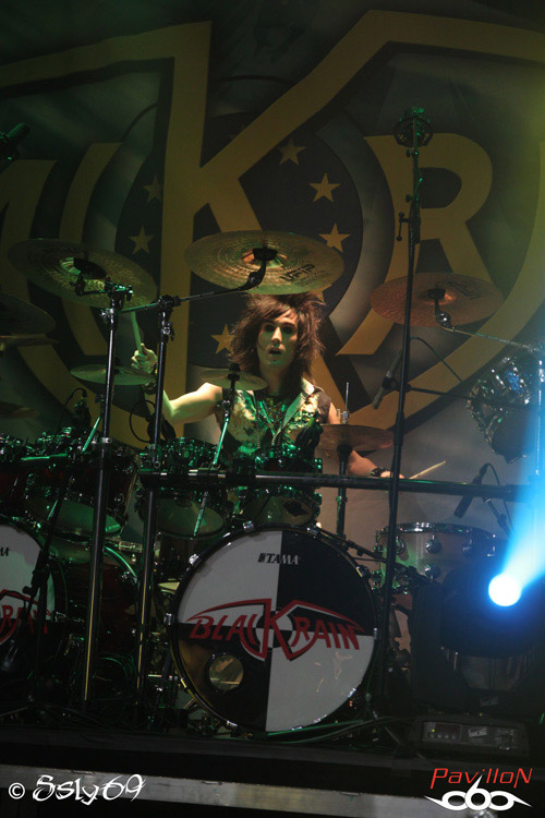 Vingt et une heures tapantes, et c'est après un petit appel au calme afin que le set se déroule dans les meilleures conditions (celui-ci étant filmé) que le rideau s'ouvre sur la scène. Le mot d'ordre est donc "pas de slam, merci!". Pas vraiment de quoi refroidir le public, si ce n'est que celui ci est moins tassé que pour le précédent groupe. On commence donc le set, avec la venue de trois joueurs de cornemuse, vétus de kilts... Pas encore de grand enthousiasme donc dans la salle, jusqu'à ce que cette partie se termine, et que le BLACK RAIN monte enfin sur scène. Le public n'est pas long à se chauffer, mais rapidement, divers problèmes de son vont venir le refroidir. On pensera surtout aux difficultés de micro et à un petit souci au début du passage en accoustique, qui d'ailleurs semble peu cohérent avec le reste du set. Le groupe semble en faire un max, non pas du point de vue de leur jeu de scène, mais des ajouts conséquents, tels que ces deux personnages peu vétus qui viennent annoncer chaque morceau, pancarte à la main (histoire que le public puisse reconnaître les morceaux peut-être), on aura aussi droit à un passage avec des danseuses de burlesque, et surtout à de petits discours du chanteur quasiment entre chaque morceau. Au final, le show passera au surfait, à force de justement vouloir trop en faire, et bien que la salle ne soit pas aussi pleine que pour le set de CRASH DIET, on peut constater qu'elle se delèste encore de quelques spectateurs au fil du temps. Au final ce groupe sera assez décevant sur scène, surtout en passant juste après les suédois. Dommage pour une soirée qui prométait d'être bien rock'n roll.