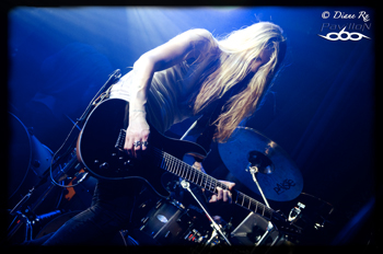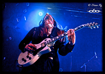 S’il y en a bien un qui n’a pas du tout changé, bien sûr, c’est le leader aux pieds nus Daniel Gildenlöw et son inamovible marcel blanc qui semble vous dire « je viens de me lever, j’avais déjà ça sur moi, donc je n’allais quand même pas me changer non ? ». Certes non porté au début du concert –pour les 10 ans du fan-club Inside The Pain, il avait fait péter la chemise en jean, mais le Divan du monde étouffant lui fera amèrement regretter dès la première chanson-, il fera donc son apparition en fin de set. Et quel set.
