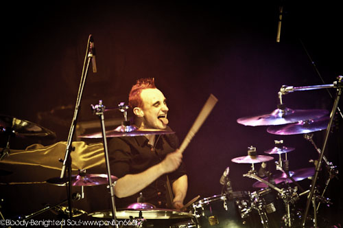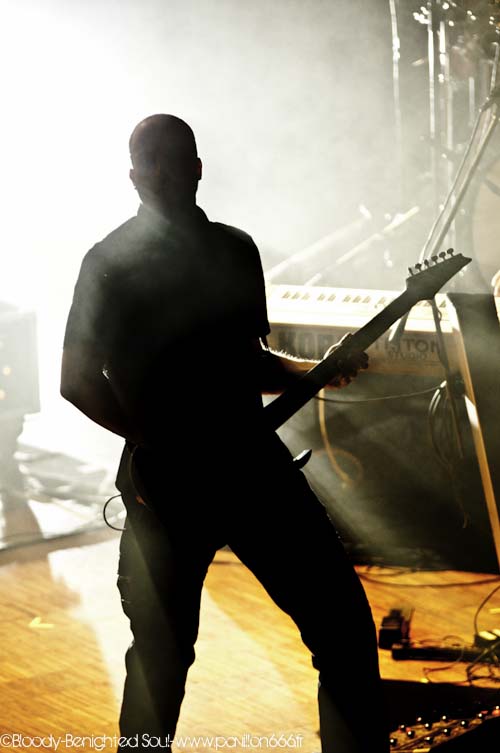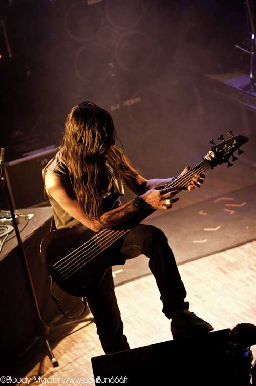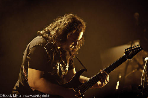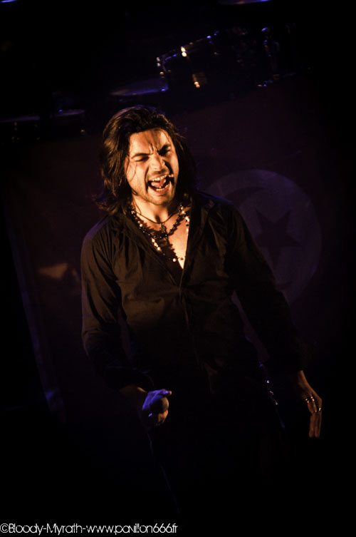 Initialement prévus en premiers, les Français de Benighted Soul joueront avec plus de temps de jeu car ils ont au final basculé en seconde position. Tout ceci n'arrange pas les Tunisiens car ce sont eux qui doivent ouvrir les hostilités devant un Bikini plein aux trois quarts. Sans passer par quatre chemins, le combo va distiller son metal oriental à la sauce symphony X dans les oreilles des spectateurs qui découvrent la formation pour la plupart. Mais parfois le hasard fait bien les choses car Myrath vient de livrer une performance excellente qui n'a échappé à personne. En seulement vingt minutes de jeu, la formation Arabe vient de conquerir le millier de spectateur présent devant lui. Mettant logiquement à l'honneur son petit dernier "Tales Of The Sands", Myrath va en tirer les pièces progressives les plus riches qu'ils possèdent. D'un grandiose "Sour Sigh" au single "Merciless Time", le combo va faire usage de tout son talent pour se faire acclamer par l'assistance. Meneur de jeu hors pair au charisme sans précedent, Zaher Zorgati ne vas pas mettre longtemps à tenir l'assistance dans le creux de sa main. Si ses compères ne bougent pas énormement, c'est surtout lui qui va mettre le feu au poudre grace à son jeu de scène survolté et ses lignes de chant arabisantes. Chaque membres se trouvent être en forme; du timide (mais excellent) guitariste a la nouvelle recrue derrière les futs (Morgan Berthet) tout le monde développe une excellente cohésion qui fait plaisir a voir. En espérant que la prochaine fois il n'y aura pas de mauvaise surprise de la part de la salle car le public est unanime sur un point : Myrath c'est la grosse surprise de cette soirée !