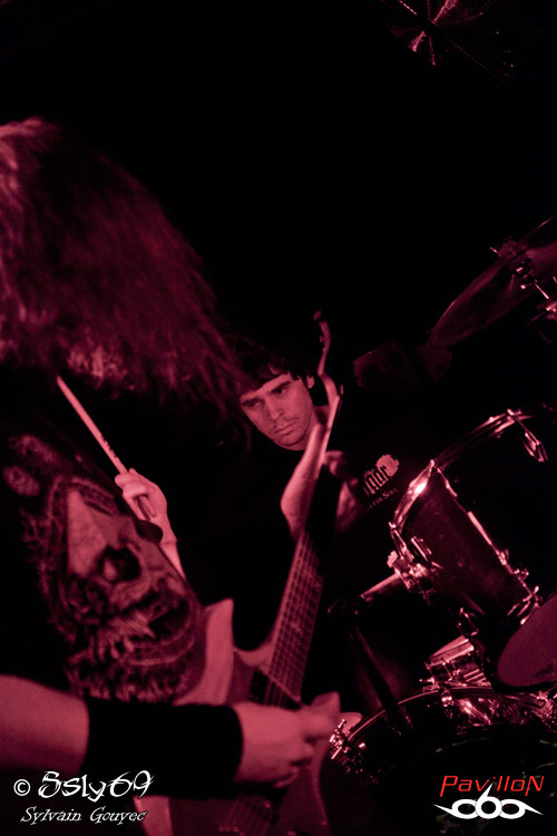 On entamera le menu avec les Lyonnais de CULT OF OCCULT. Après s'être fondus dans le public, on les verra monter sur scène très rapidement pour entamer un set qui s'annonce rapidement énergique. Le plus gros défaut (et peut être le seul d'ailleurs) se fait rapidement sentir. La voix semble effectivement beaucoup plus basse que le reste du groupe. Elle reste cependant audible, mais on aura par moments l'impression de manquer une partie des morceaux. On peut cependant se douter que cela est du à l'abondance d'amplis répartis sur la petite scène de la salle, qui d'ailleurs laissent peu d'espace pour le groupe. Qu'à cela ne tienne, le chanteur se sentant sûrement à l'étroit prendra son micro et sa bière pour venir au plus près de son public. Les quelques passages sans chant nous laisseront voguer au rythme des vibrations qui viennent de partout. La fin de set gardera son ton gras, mais une forte dose d'énergie viendra completer le tout, afin de mieux marteler nos oreilles qui ne en redemandent aussitôt fini.