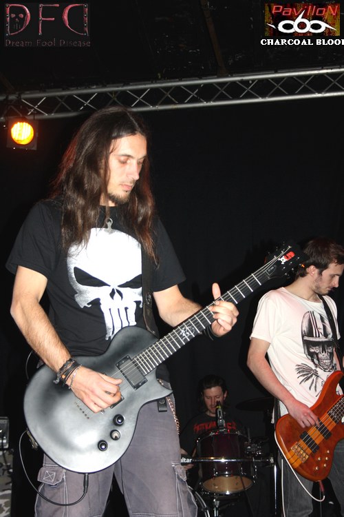 Chart envoie les premières notes d’un son lourd, surplombant l’audience dont le nombre a maintenant atteint les quarante entrées. Le guitariste est rapidement rejoint par le reste de l’ensemble avec une batterie percutante, une basse très perceptible et un chanteur qui pousse des growls à tomber par terre. Bon point, DREAM FOOL DISEASE bénéficie de la bonne acoustique du Triomphe et on profite entièrement de chaque accord. Les membres se donnent à fond, ne tiennent pas en place et manquent de se percuter à plusieurs reprises. Il faut dire que cela faisait quelques mois que le groupe ne s’était pas produit en live et on ressent donc une grande envie de sa part de partager sa musique avec le public. Le seul point faible du concert vient justement de ce dernier qui se montre plutôt avares d’encouragements malgré une bonne performance. Heureusement pour nous, le quintette continue à jouer son « Death/Black/Thrash » avec une envie non négligeable, les titres défilants à une allure soutenue. Le set s’achèvera sur un très bon medley habilement orchestré, mêlant « Troops of Doom » de SEPULTURA avec le titre « Watchout » pour finir sur le riff du superbe « To Live is To Die » de METALLICA.