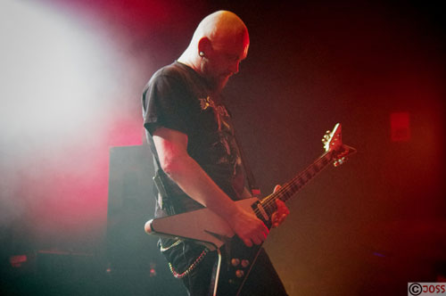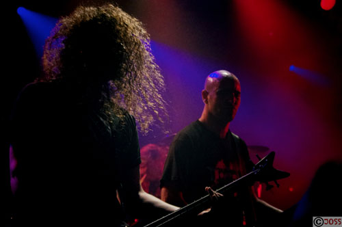 Après le changement de plateau, il est déjà 22h30 lorsque les "géants du death / thrash lillois" vont déclencher les hostilités. Stéphane Buriez, fondateur et figure emblématique de LOUDBLAST, donne le ton en s'exclamant:"Est-ce que vous êtes prêts à foutre la m**** ce soir? La réponse viendra, lentement mais sûrement.