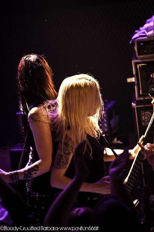 Le reste du set jonglera allègrement entre "In Distortion We Trust" et "Till Death Do Us Party" sur lesquels les filles tireront les morceaux les plus percutant en live. "Play Me Hard", "Bad Hangover" et Motorfucker seront la pour représenter leur premier méfait tandis que "Pain And Plesure", "Sex Action" et "Jenyfer" seront les seuls morceaux de leur dernier album qui seront joué. Au passage, la power ballade Jenyfer vaut son pesant de cacahuète car elle sonne beaucoup mieux en live. Interprété avec beaucoup d'émotion, ce sera l'un des moments forts de cette soirée.