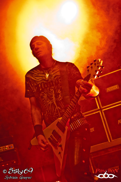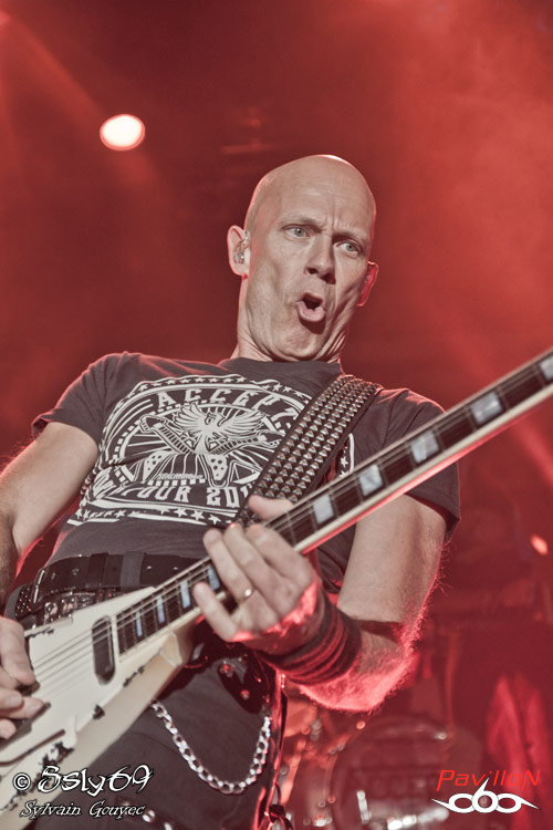 Arrive donc l'heure d'ACCEPT, suite à une prestation en demi-teinte, le moment n'est plus à la rigolade. Les allemands entament fort avec "Hellfire", suivi directement de "Stalingrad". Tournée de promotion oblige, le nouveau bébé du groupe est donc rapidement mis à l'honneur ce soir, mais ne reviendra qu'une seule fois en milieu de set avec "Shadow soldiers", on pourra trouver celà dommage, ce nouvel album ayant été très bien reçu. Le groupe se donne vraiment à fond, et le public le lui rend bien. On assistera à un show très carré, quasiment millimetré, aucune place pour l'improvisation donc, d'autant plus que cette date est la première de la tournée. On ne ressent pas d'appréhension de la part du groupe qui envoie tout ce qu'il a dans les tripes. Le show reste donc dans la lignée des shows d'ACCEPT, et la majeure partie des classiques seront joués ce soir. On retrouvera des titres tels que "Princess of the dawn", ou encore "Up to the limit" alors que la fin du set approche. On continue dans les joyeusetés avec "No shelter" et "Pandemic" alors que des problèmes de micro commencent à pointer le bout de leur nez. La voix de Mark Tornillo devient quasiment inaudible alors que celui-ci s'égosille en espérant que le staff arrive à régler le problème rapidement. Le problème persiste malheureusement, et une partie du public commence à siffler. Manque de compassion alors que le groupe aura tout fait pour continuer, d'autant plus que celui-ci nous reviendra au bout de dix bonnes minutes afin de terminer son set. Départ du groupe après un "Fast as a shark" quelque peu calmé par cette difficulté technique. Le groupe nous reviendra rapidement afin de nous jouer un rappel détonnant, composé de "Metal heart", "Teutonic terror", et "Balls to the wall", et oui, rien que ça. De quoi nous faire oublier l'incident qui vient d'avoir lieu, et achever cette soirée sur une note des plus agréables.