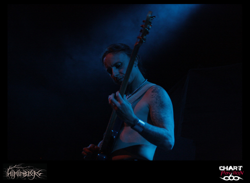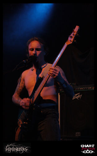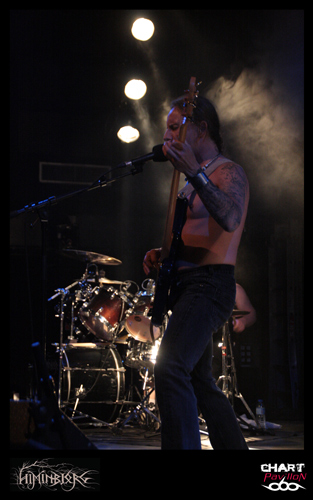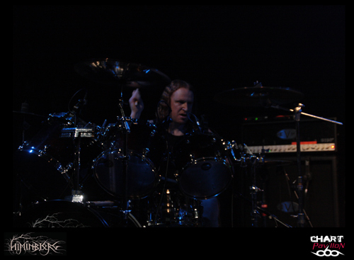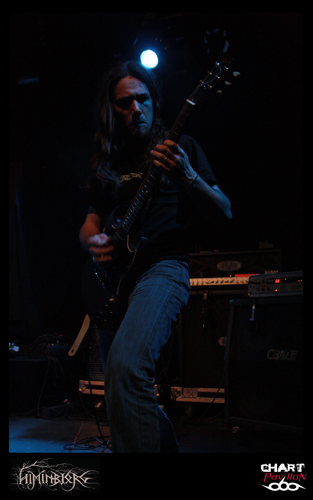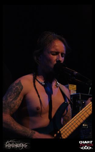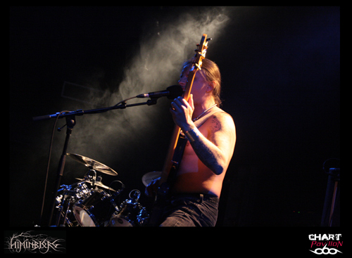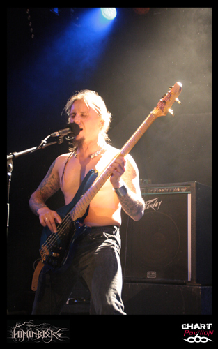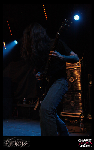 La soirée commence avec le groupe local HIMINBJORG. Le trio est actuellement en plein de retour et quoi de mieux pour eux que de participer à cette affiche même si leur style est quelque peu différent. Ils s’offrent tout de même une belle visibilité surtout auprès des plus jeunes qui les ont ratés à la fin des années 90 et au début des années 2000. Malgré une très bonne expérience scénique, la formation est assez statique sur cette grande scène du CCO et le son pas vraiment excitant. La batterie et le chant occupent une grande partie du mix mais malheureusement la guitare et la basse sont en retrait. Cela donne l’impression que les changements sont rares et toutes les subtilités de la guitare sont passées à la trappe. Dommage, on aurait aimé en profiter un peu mieux car les qualités sont là. Le groupe est en place. Xavier à la batterie, aussi dans HYSTERIA, nous a déjà prouvé son talent et le chant de Zahaah est loin d’être linéaire avec ses parties en voix claires qui viennent donner une touche encore plus sombre à l’ensemble. HIMINBJORG aurait peut-être mieux trouvé sa place il y a quelques semaines en première partie d’ENSLAVED dans cette même salle.