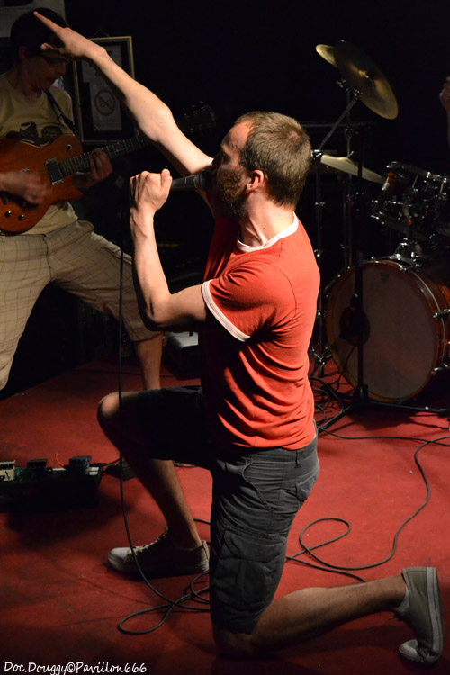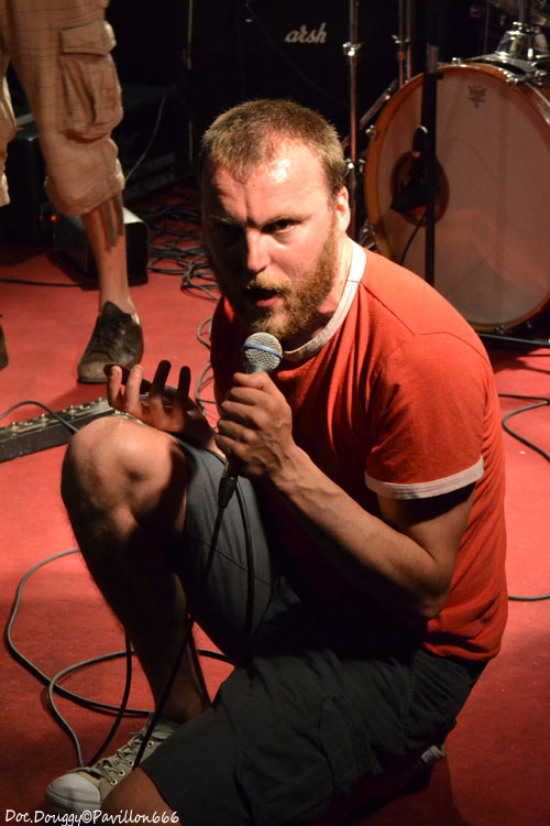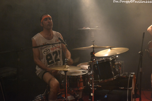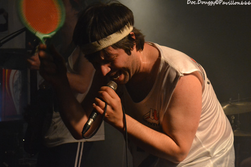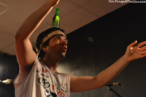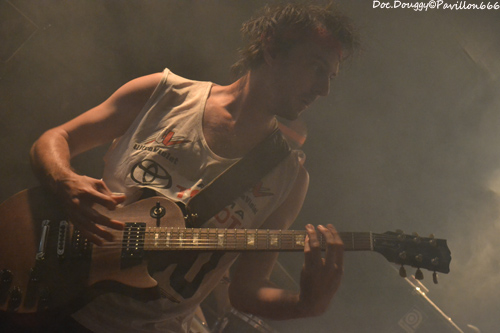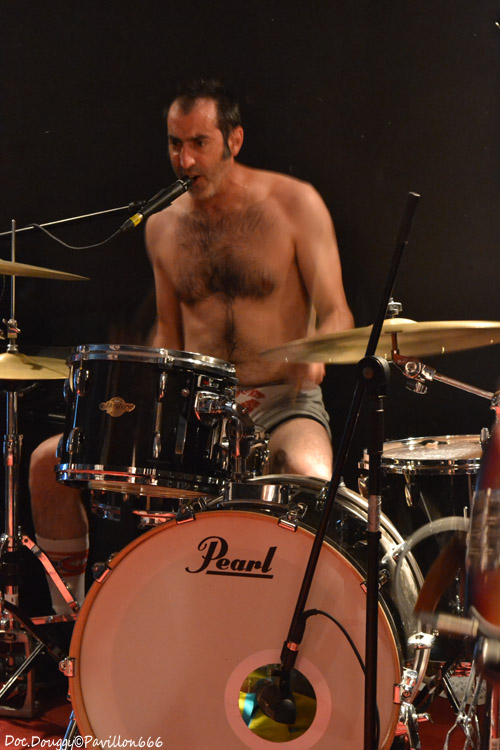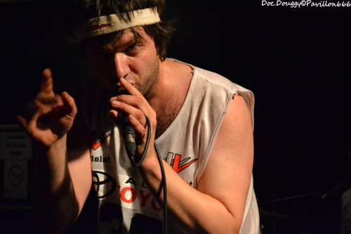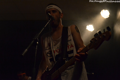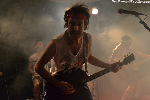 Il est un peu moins de 23h quand se fait entendre “The Eye of the Tiger” dans la salle et voilà que MON ONC'SERGE ET LES SPORTIFS arrivent, bandeaux sur la tête, maillot d'athlètes et chaussettes de football tels les gladiateurs des temps modernes du fond de la salle pour une bonne heure de “Hard rock'n roll/ punk” à la sauce Québequoise ! Cette fois-ci le groupe du chanteur charismatique est un quatuor composé de basse/guitare/batterie. Et comme toujours, une tchache pas possible avec le public qui ne manque pas de rire ou de s'exclamer après lui lors de ces explications sur le pourquoi du comment de son retour “-Pleins de Français viennent au Québec et nous disent qu'ils y ont trop d'immigrés/ Alors nous on a choisi de venir en France pour les voir ces immigrés et quand on arrive, qu'est qu'on voit ?... DES FRANCAIS ! “ A l'instar donc de ces autres projets, ici la simplicité des riffs donnent une ambiance plutôt festive avec une ambiance à la AC/DC. Le son de la guitare et de la basse est à la hauteur de la soirée, et MON ONC' ET LES SPORTIFS nous dévoile une setlist basée sur leur premier et unique album en date, avec comme toujours les classiques en fin de set qui feront danser tout le public sur des fanfaronnades “Marijuana” et “L'âge de Bière” qui pour l'occasion voit un jeune homme du public boire sa canette cul-sec sur la scène, un Serge monter sur le bar pour chanter ou encore prendre une canette pour un exercice d'équilibre en la mettant sur sa tête et en descendant de la scène sans en perdre une goutte. Malgré quelques soucis de machine à fumée envahissante par moments, je passe comme toujours un excellent moment en la compagnie du Québequois.