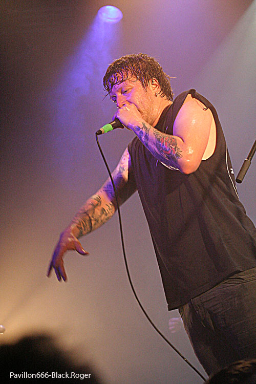 L’arrivée des Canadiens sur l’estrade se fait sans perte de temps, COMEBACK KID semble déchaîné dès les premiers titres, l’assistance aussi. Alors, pendant presque une heure, nous allons déguster dans tous les sens du terme. Le show est ébouriffant, le son énorme, les claques musicales à jet continu. Les maitres actuels du punk/hardcore sont en forme, le frontman vient régulièrement faire chanter ceux des premiers rangs, les guitares sont en l’air, la rythmique implacable de maitrise. Depuis 2002 en fait, tout a été très vite pour ce jeune combo virulent qui dès 2005 avec son second opus « Wake the Dead » est signé chez Victory Records de Chicago. Et ce fut mérité, preuve en est ce soir avec riffs hardcore/métal nous collant aux murs, voix punk remarquable d’intensité, Ici ce soir l’ambiance de folie est au rendez-vous, stage-diving incessants, sueur, chaleur, mouvements, c’est du non-stop, quel régal ! « Talk Is Cheap », « Broadcasting », « Final Goodbye » et « Wake The Dead » ont fait leur œuvre dans un Kao (chaos !) complètement en nage. Ce fut tout simplement énorme et je pèse mes mots, je n’en reviens toujours pas.