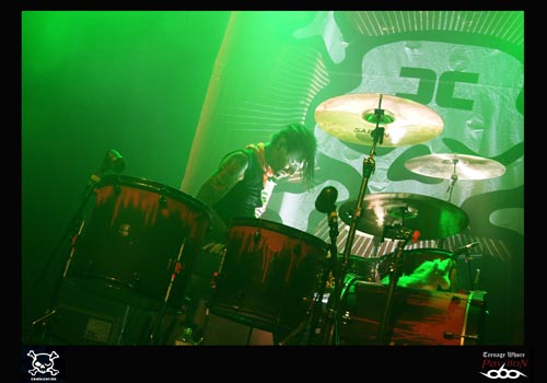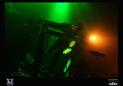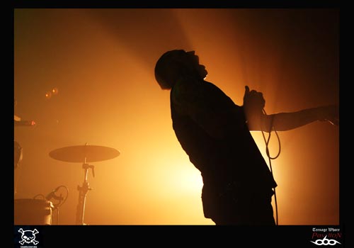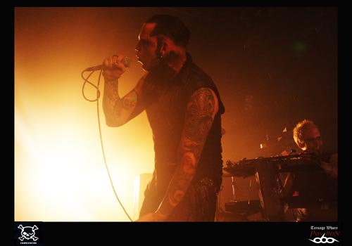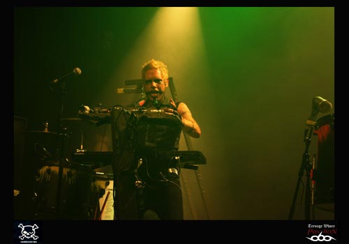 21h pétante, et c’est à COMBICHRIST de faire son show. Andy La Plegua monte sur scène et est acclamé par la foule. Il y aura plusieurs étapes à ce concert. Tout d’abord, les trois premiers morceaux où il y a qu’Andy et deux claviéristes sur scène. Puis, le batteur débarque, et ensuite ce sera au tour du guitariste de venir. Comme à son habitude, Andy ne peut s’empêcher de courir à droite et à gauche de la scène. Cet homme a probablement une pile duracell à la place du cœur ! La mise en scène est assez bien travaillée dans le sens où le batteur est par exemple placé de côté, ce qui permet pour le public (pour une fois !) de voir un peu plus que le bout du nez du musicien ! Les deux claviéristes alternent entre clavier et caisses claires. L’ambiance est au top niveau, la foule est déchainée. COMBICHRIST jouera pendant une heure et demie ce soir, et ça pour le plus grand plaisir du public. Il est vrai que beaucoup de personnes avaient trouvé très médiocre leur dernier passage sur Lyon au Ninkasi Kao, on peut dire qu’aujourd’hui le groupe s’est racheté une crédibilité. En effet, après le concert, on peut entendre des « c’est de la tuerie » ou « une très belle claque ! ». Tout le monde est unanime ! COMBICHRIST est un groupe à voir absolument sur scène.