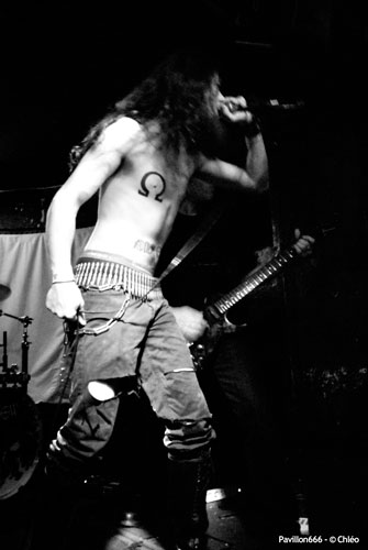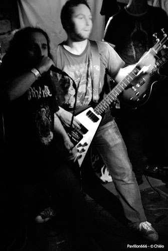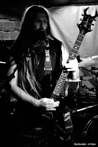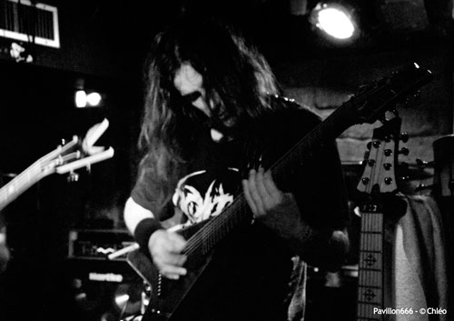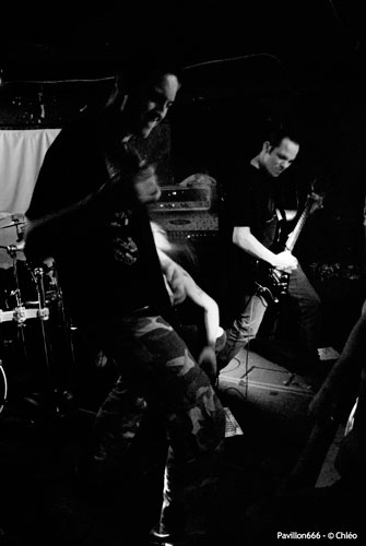 Vient le tour de Death Agony qui nous viennent de Maubeuge. A l’appel de leurs riffs énervés et endiablés, les pogoteurs fous sont de retour. Sur scène, le quatuor nordiste nous offre des compositions Death travaillées et presque mélodiques par moment. Je distingue une certaine technique très bien maitrisée et une justesse dans la voix. Une sorte de tornade métallique envahit la salle qui, à peu de choses près, emmènerait les spectateurs dans un enfer incontrôlé qui les pousserait à avoir des comportements de désaxés asociaux comme secouer la tête de façon compulsive, hurler sans raison et proférer des insultes à tout va. Même si, à bien y réfléchir, c’est déjà un peu le cas depuis le début de la soirée et ça n’ira pas en s’améliorant. Le combo alterne anciens et nouveaux morceaux ce qui donne au set un rythme aussi maitrisé qu’intéressant. Influencés Death Old-School, Trash et même parfois un peu Black, c’est toute cette diversité qui fait l’originalité du combo.
