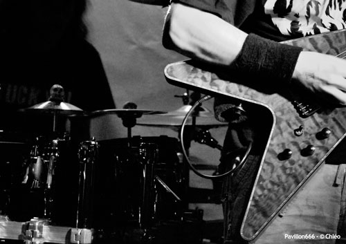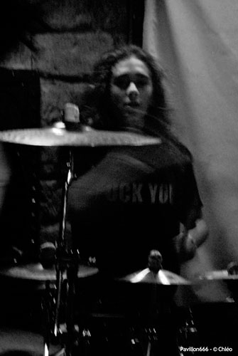 Vient le tour de Master Crow, dont on aura deviné la présence ce soir par leur batterie en concurrence directe avec l’habituelle du Klub… Je découvre alors un étonnant musicien derrière les baguettes, âgé de 15 ans seulement. Ce batteur surprenant nous offre un spectacle assez inédit. La maitrise est là, il n’y a pas de doute ! Encouragé par son père, à la guitare et au chant, le combo ne serait pas complet sans le bassiste, âgé de 18 ans mais qui a déjà tout d’un « grand ». Les compos sont travaillées et structurées. Je ressens bien la volonté du trio à vouloir montrer leur technique et leur originalité. Malgré tout, je reste assez perplexe au niveau du chant clair, étant amatrice du chant growlé. Ce petit bémol ne m’empêche en aucun cas d’apprécier le show qui s’offre à moi. Les morceaux s’enchainent et ne se ressemblent pas. Les basses deviennent très fortes d’un coup et les riffs du bassiste deviennent presque inaudibles mais tout revient à la normal quelques instants plus tard. Une belle découverte pour ma part, et un bon préambule au groupe suivant…