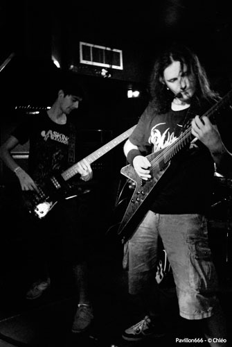 Me voilà devant HERPES, combo un peu plus brutal que les précédents. Les cinq Nancéiens nous propose des compositions rythmées et équilibrées, saupoudré d’un chant Death assez classique mais qui créé son effet. Les riffs basiques mais structurés des guitares et des lignes de basse se livrent dans une bataille sans fin tout au long du concert. Bien qu’ils semblent un peu à l’étroit sur scène, les musiciens nous proposent un set bien construit et des morceaux originaux, rappelant par moments leurs influences musicales (Vomitory, Autopsy & C°). Il me semble reconnaitre certains morceaux de leur dernière démo, Awaking of a sleeping madness, sortie il y a quelques temps. Durant ces quarante-cinq minutes de set, ils donnent aux spectateurs de quoi barboter dans un Death Metal tantôt Old-School, tantôt Brutal, ce qui les caractérise et les différencie des groupes vus précédemment.
