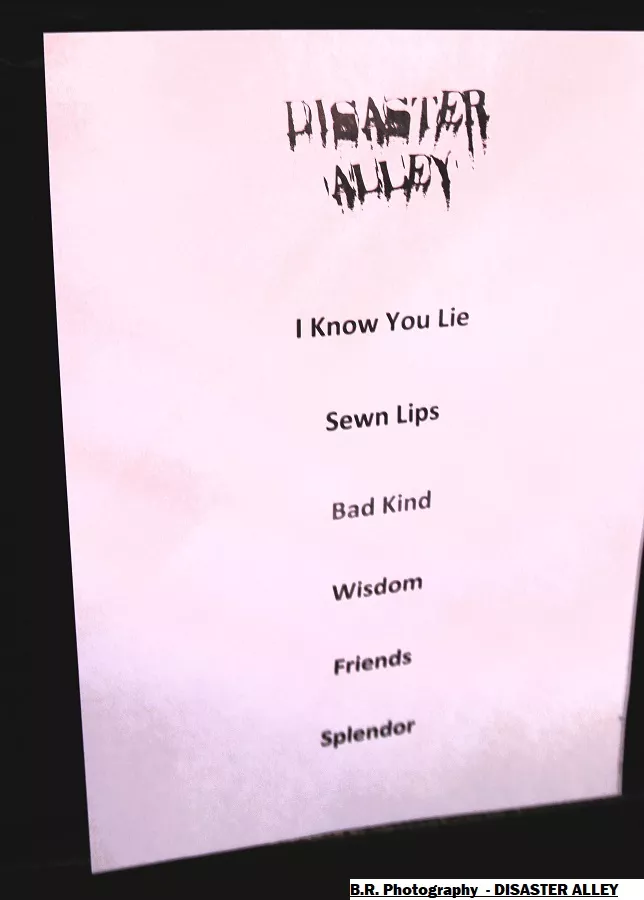 DISASTER ALLEY en live se révèle bien accrocheur et il se donne les moyens de nous offrir des compositions bien personnelles qui nous titillent les oreilles entre mélodies grinçantes et déviances énergique, on aime !