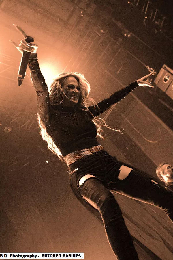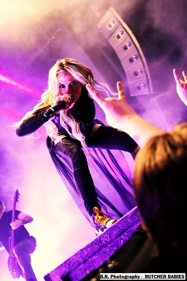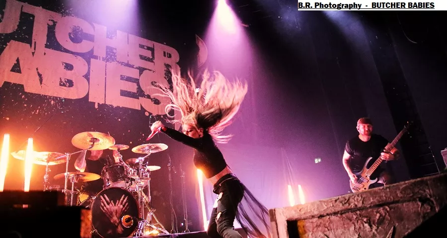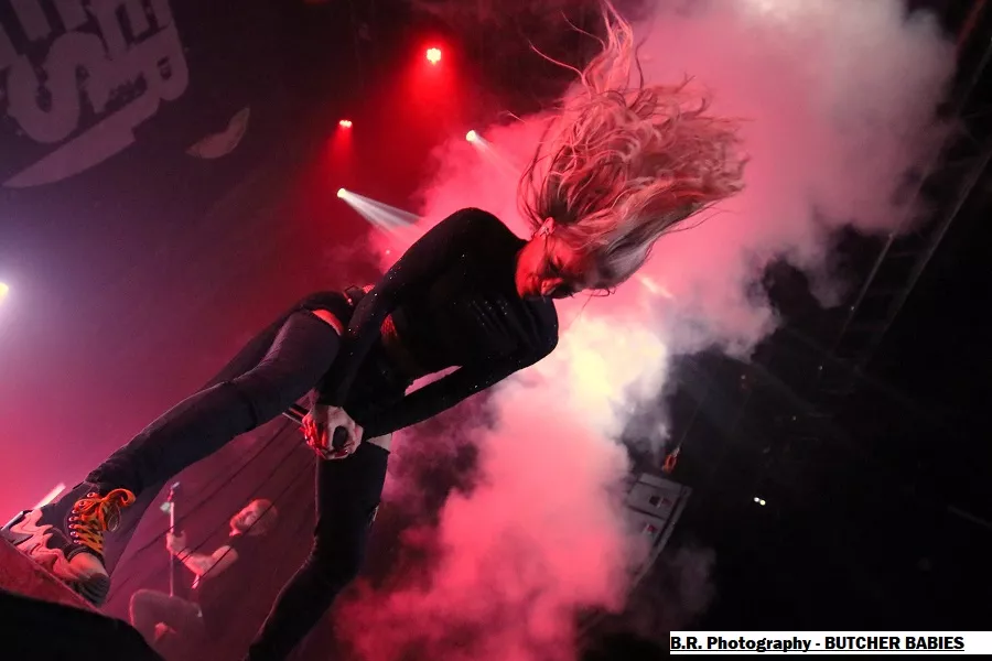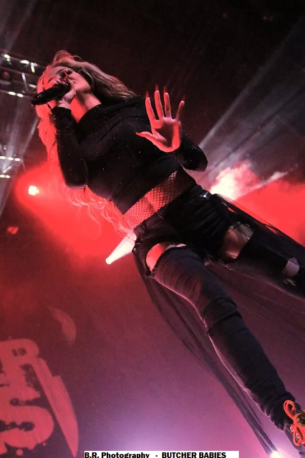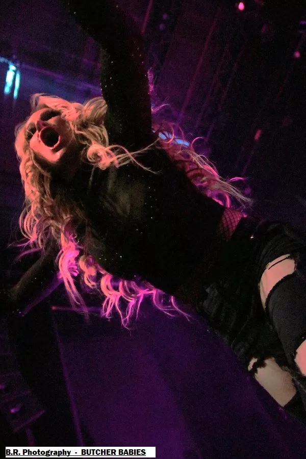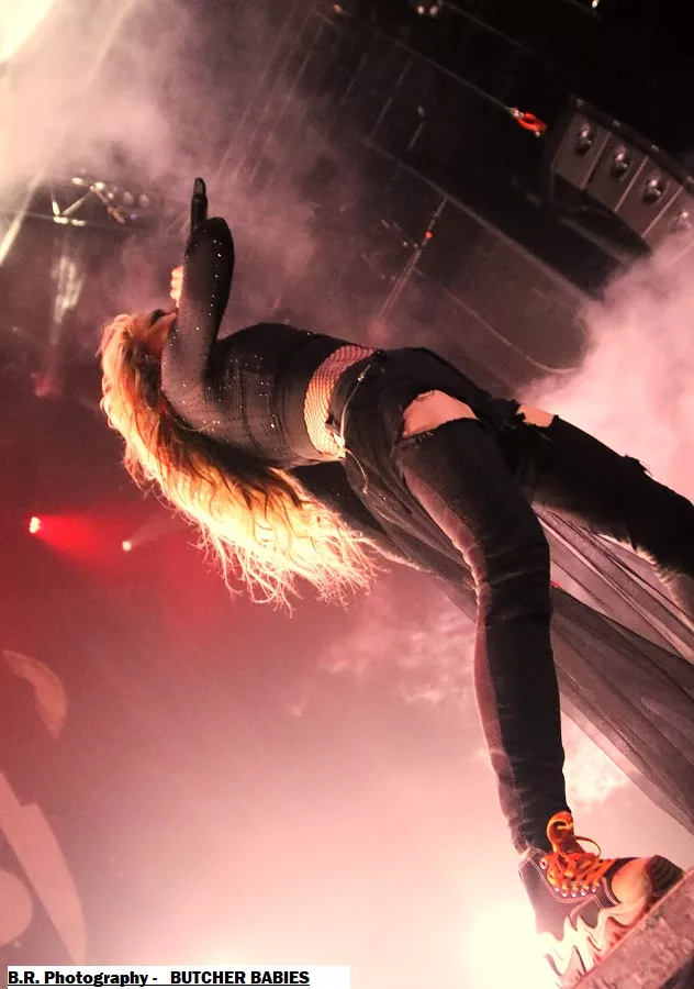 Mais le public déjà chauffé à blanc par cette première formation va devoir monter d'un cran ses appréciations avec la venue des Américains de BUTCHER BABIES. Et dès leur arrivée la chanteuse Heidi Shepherd va arpenter de long en large la scène interpellant un public chaud comme la braise à l'aide de vocaux et de screams d'une rare intensité. Et tout va partir en « live » dans les circle-pits dont l'un en présence de la chanteuse.