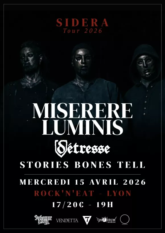 La venue des Québecois de MISERERE LUMINIS semblait très attendue vu l'affluence du public black-metal au Rock n'Eat de Lyon ce Mercredi 15 Avril 2026. Mais pour cette soirée qualifiée de « lumière noire », DETRESSE (Québec/Autriche) et STORIES BONES TELL (Lyon) ont complété cette affiche incontournable proposée par Moonfog Productions.