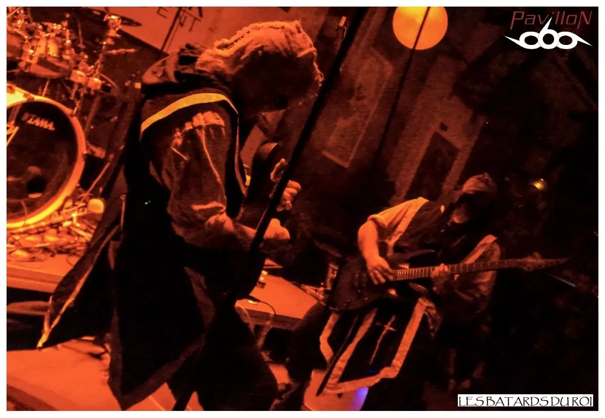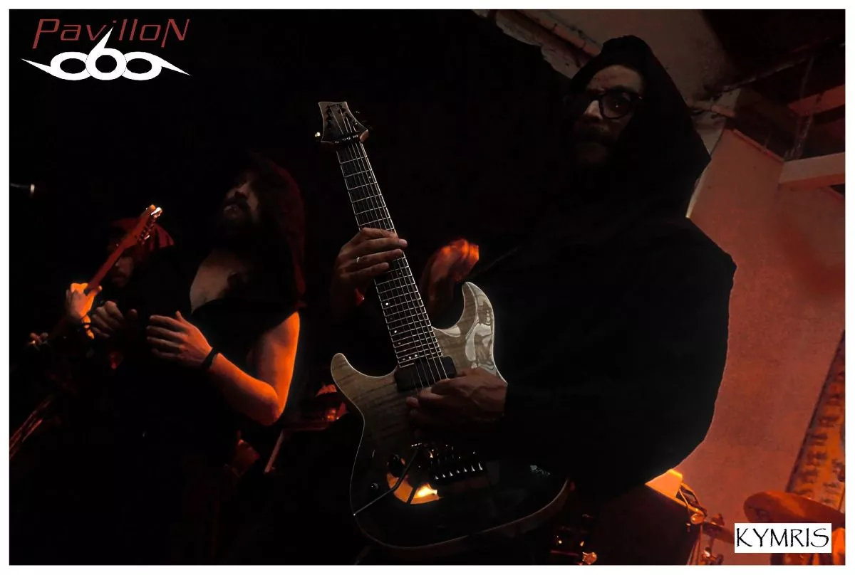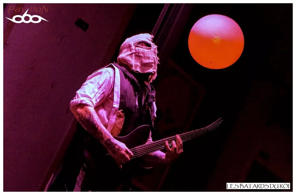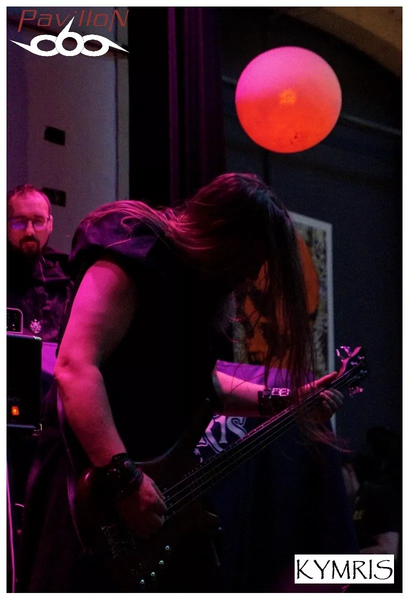 Mais parlons maintenant du line-up, c’est le groupe KYMRIS, venu tout droit de Besançon, qui a eu l’honneur d’asséner le premier coup équipé de leur death metal mélodique. Je découvrais le groupe ce soir-là et quelle belle surprise pour moi, étant une grande fan de folklore. Forcément très convaincue par cette performance et par l’album “Mythes et Légendes de la Comté” qu’ils sont venus défendre, un disque sorti en 2024, qui s’inspire du folklore de leur région et ça c’est un grand oui ! Une jolie scénographie, de mystérieux capuchons noirs, j’ai été totalement embarquée dans leur univers le temps du set, bercée par leurs mélodies entraînantes et je peux vous dire que je vais continuer à suivre le projet de près.