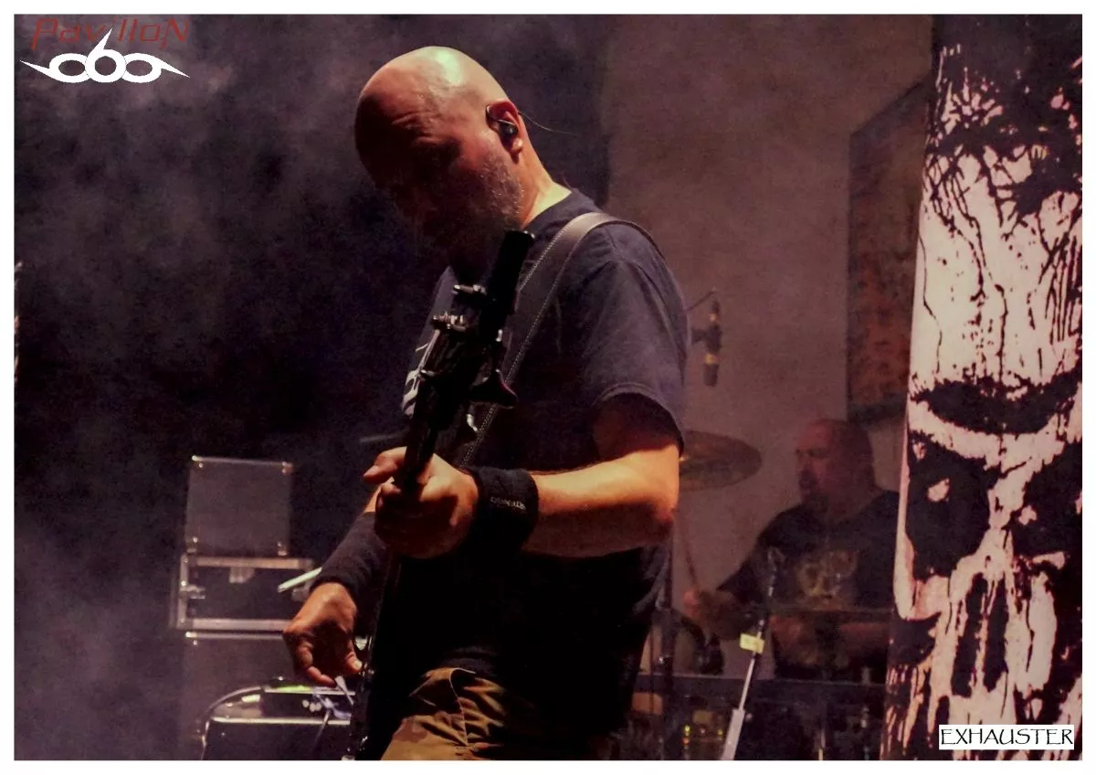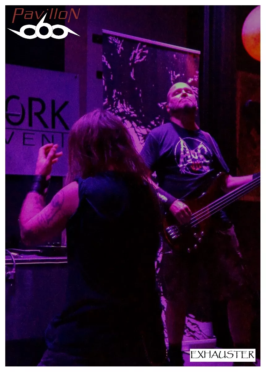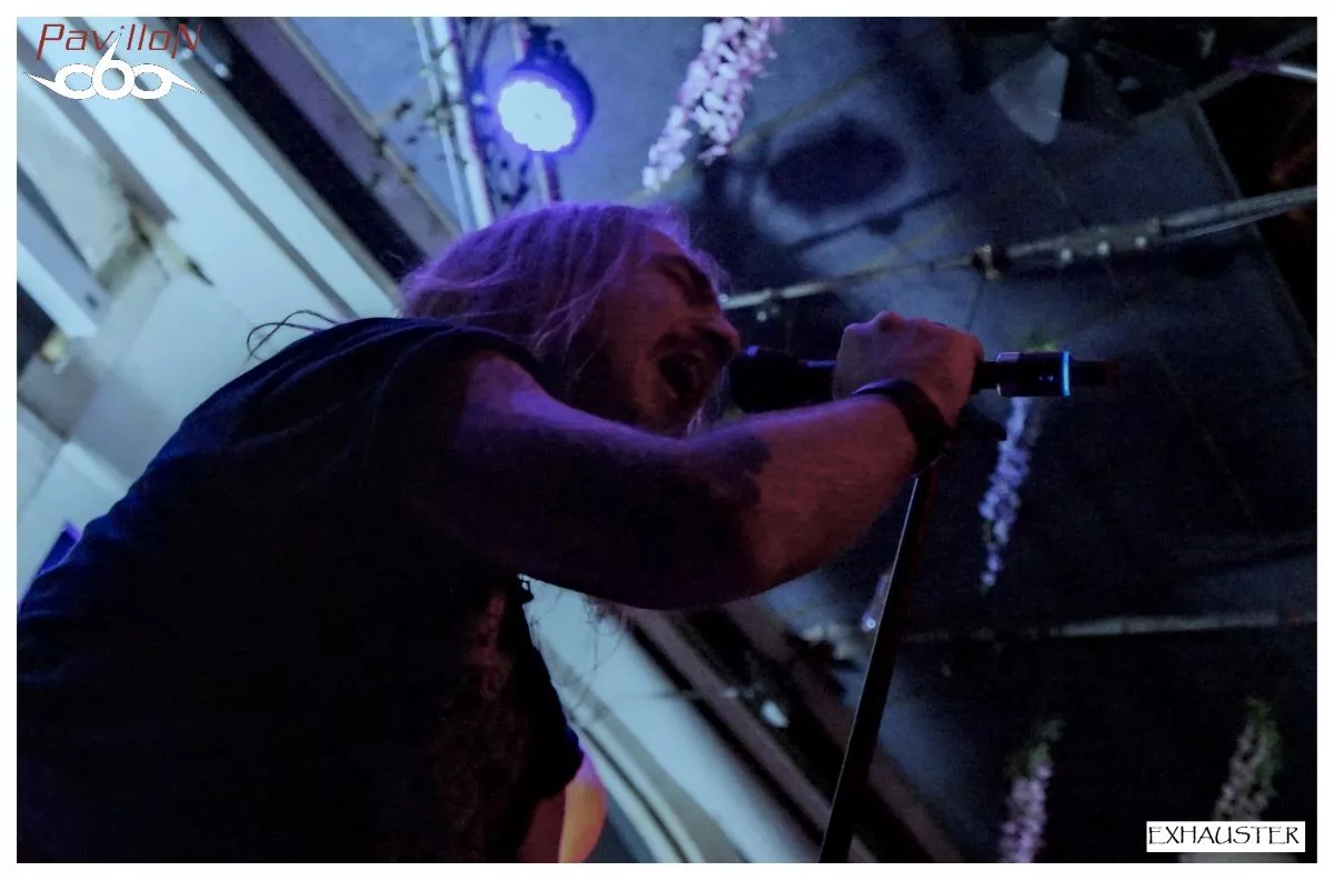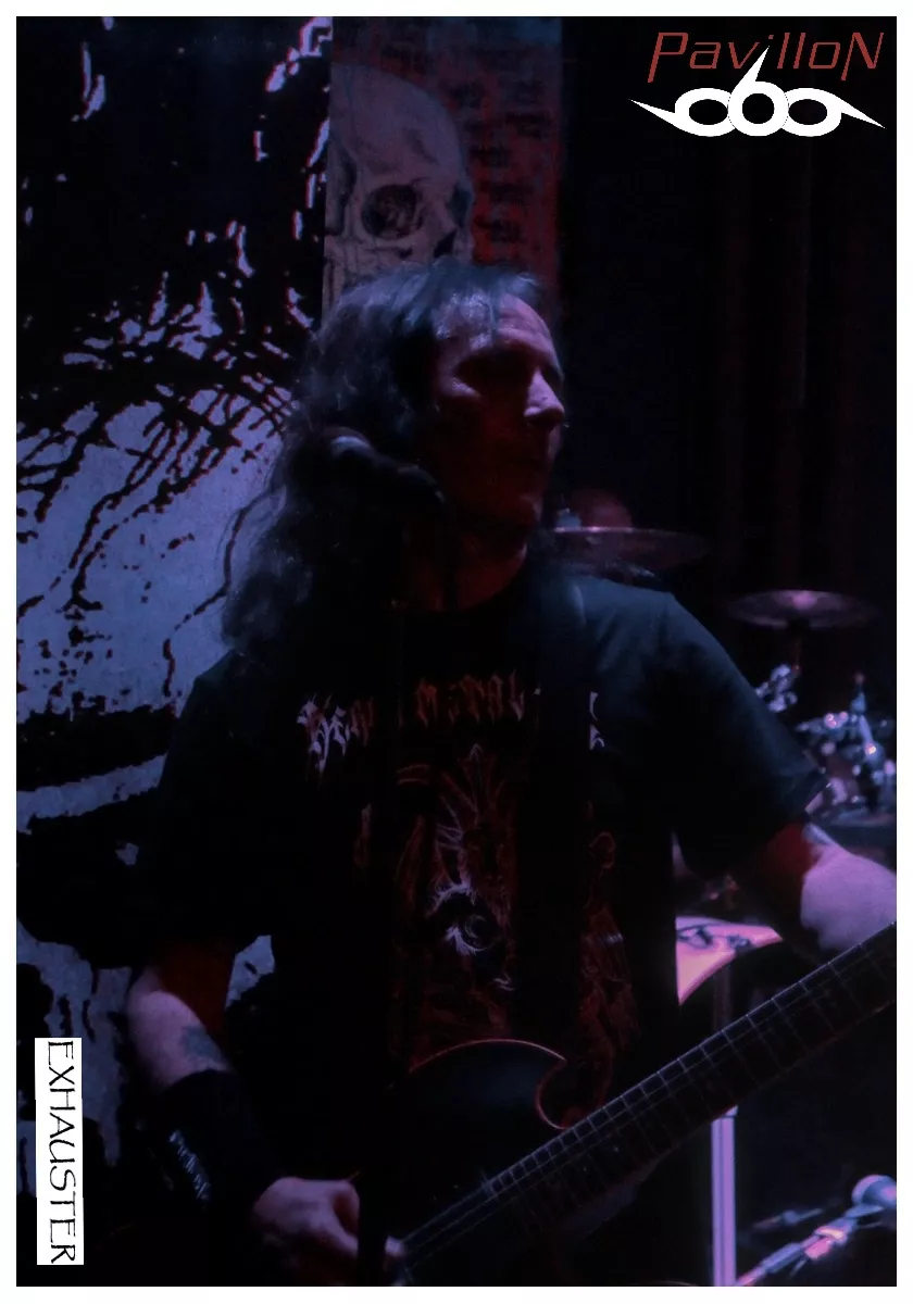 Suite à cette séquence black metal, c’est la tête d’affiche du vendredi soir EXHAUSTER qui a gravi les marches de la scène de la “Brasserie BOS”. Une soirée qui laisse place à un peu de thrash metal, mais pas n’importe lequel ! On a eu le droit là à une bande bien en place sur la scène thrash en France depuis les années 90, oui oui, la grande classe ! La formation a plusieurs démos à son actif et ce dès le début des années 90 avec notamment l’illustre “Enjoyment Of Death” sorti en 91. Autant vous dire que si vous étiez un peu fatigués en fin de soirée, il n’en était plus question, EXHAUSTER a bousculé la salle à l’aide d’un set robuste. Un thrash metal révolté, dynamique à souhait, un chant accusateur, des riffs survoltés, une batterie souple et rapide, le combo parfait pour clôturer la première soirée du “Berry Metal Fest” et croyez-moi ça a headbangé !