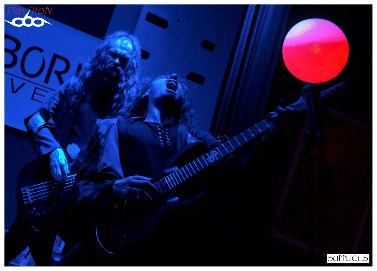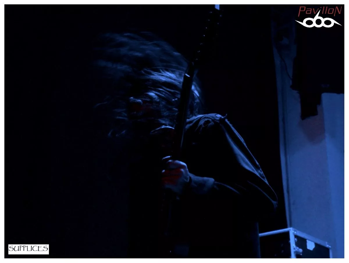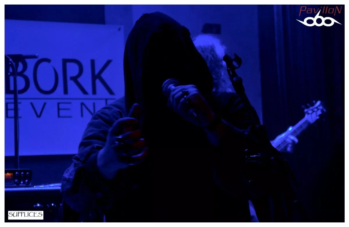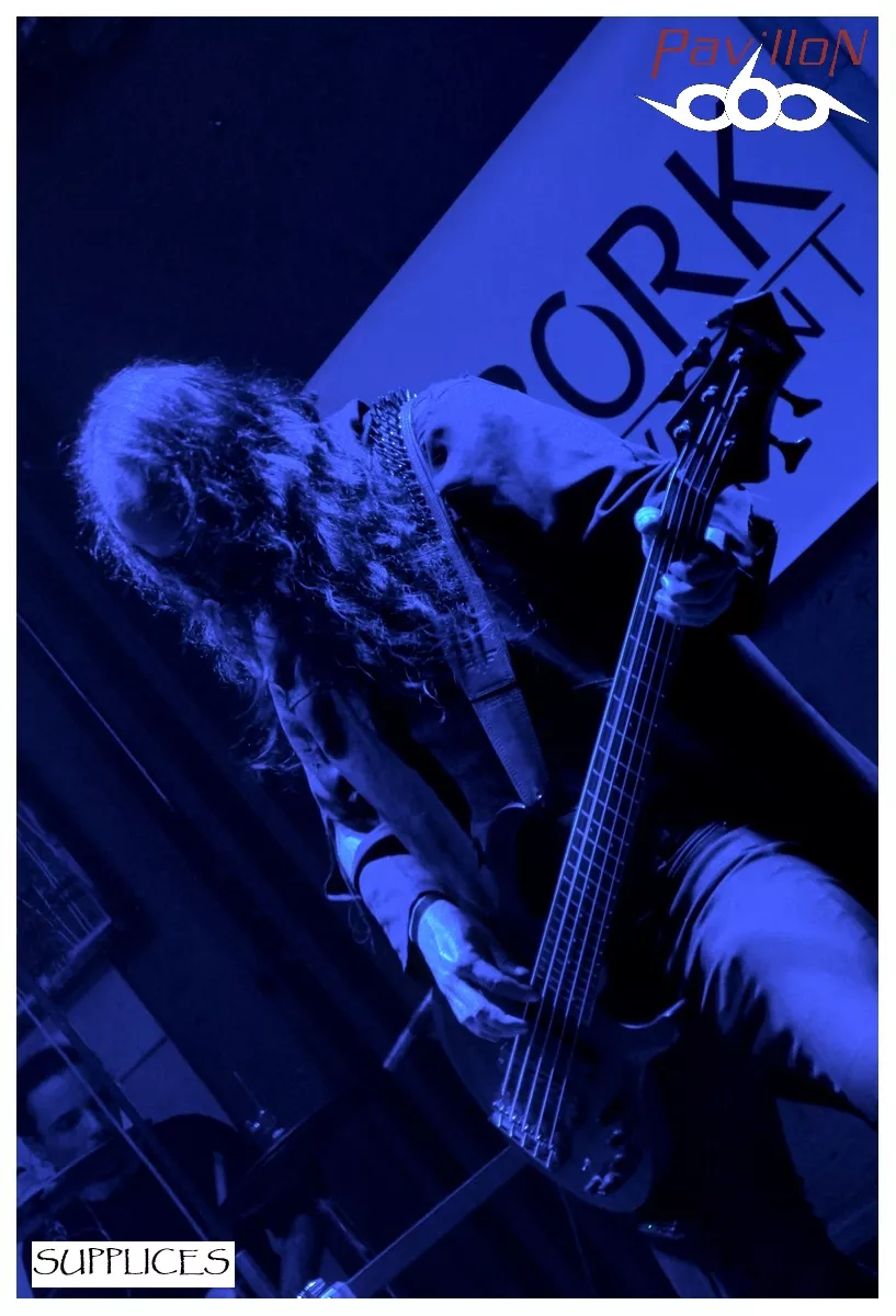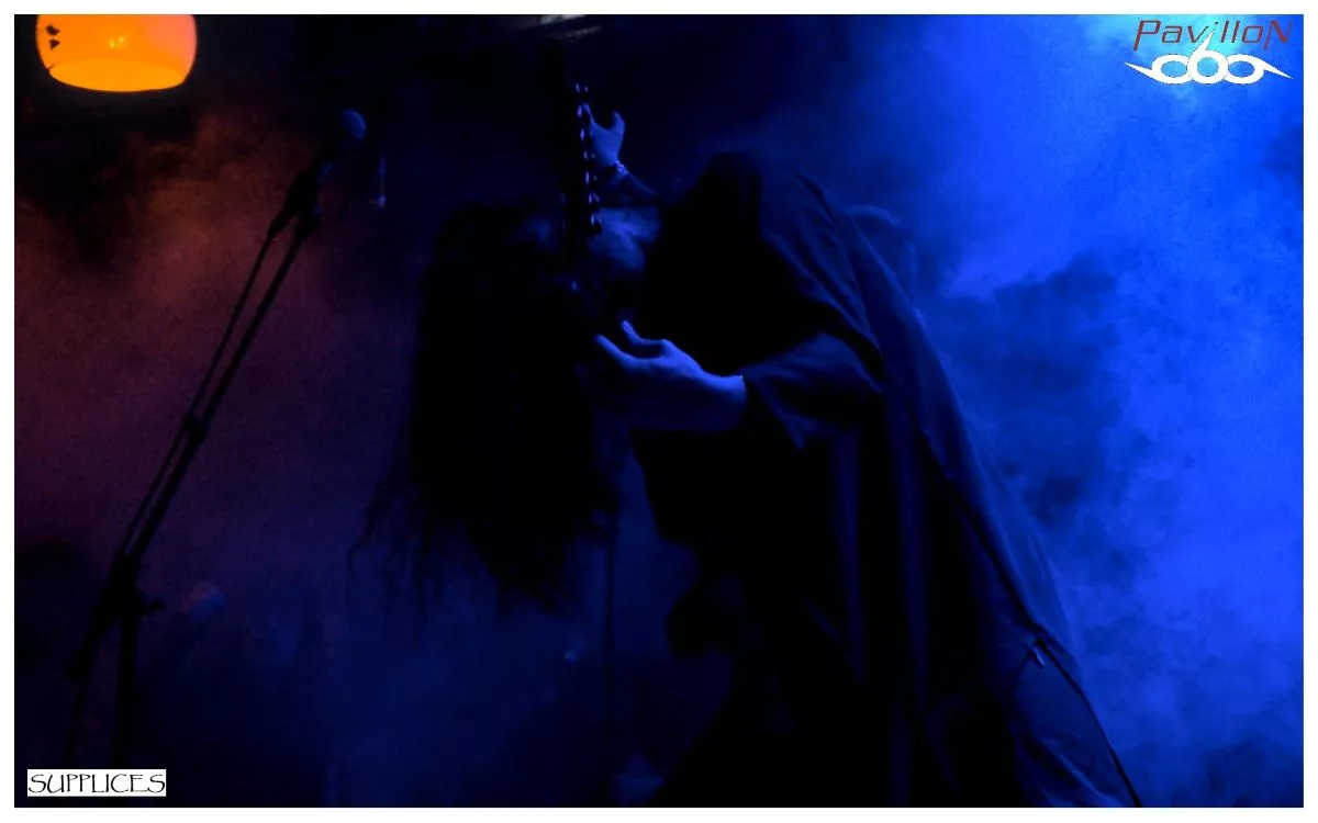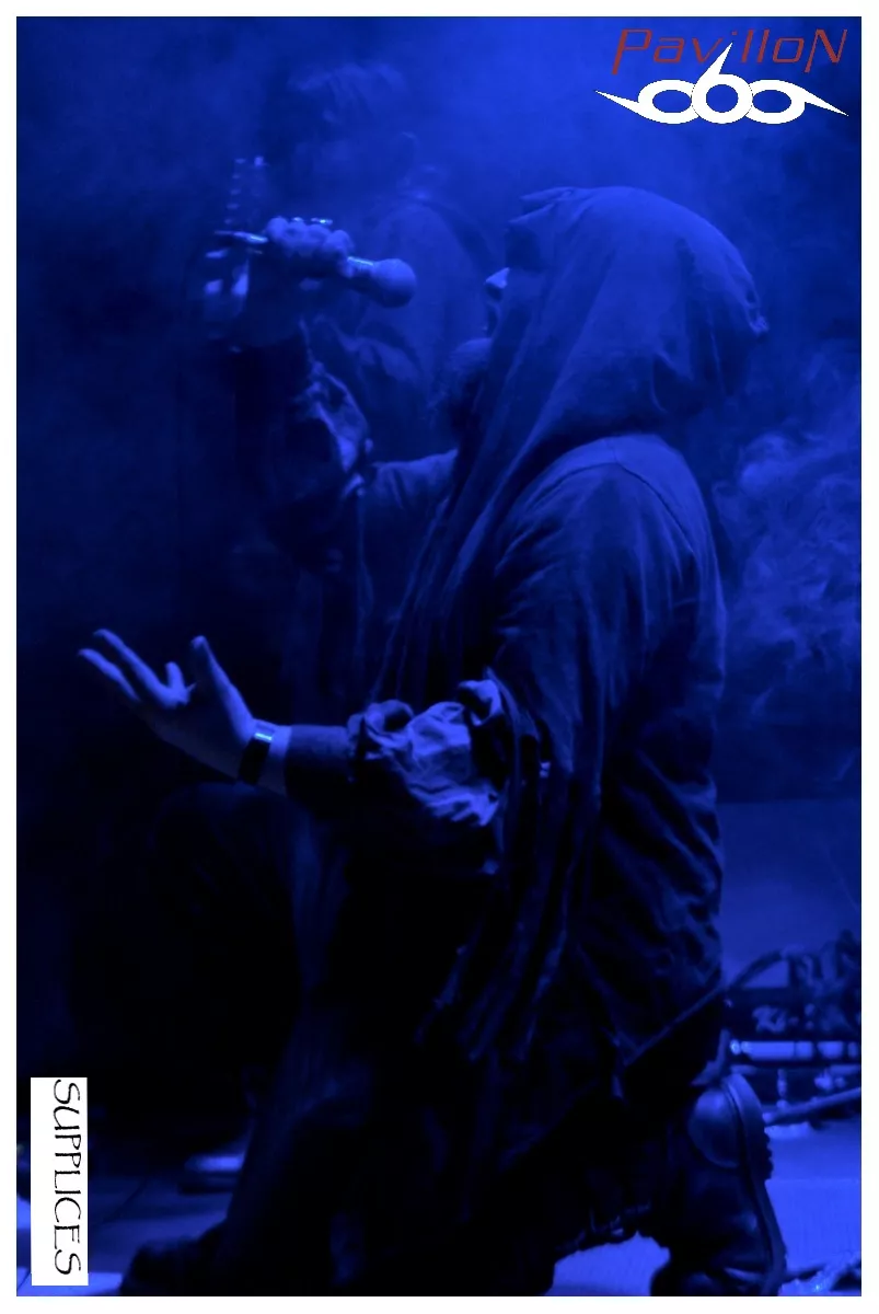 Changement d’ambiance : après les hauts-voltages d’OBSESSION, c’est SUPPLICES qui a pris place sur l’estrade de la “Brasserie BOS” avec un black metal mélodique sombre, déchirant. Le quatuor nous vient d’Occitanie et a sorti son dernier album “De l’infâme et du trépas” en 2026 sous le label “Chapitre XIII”. Ils ont amené avec eux l’ombre et la désolation avec leurs titres qui vous attrapent sans vous relâcher. Des morceaux hurlants, presque vivants, un chant à vif, des mélodies magnifiquement pessimistes, un voile de fumée accompagne l’ensemble, une scénographie efficace parée d’un bleu aussi sombre que les profondeurs des fonds marins, une énergie presque occulte s’est faite ressentir au sein de l’édifice.