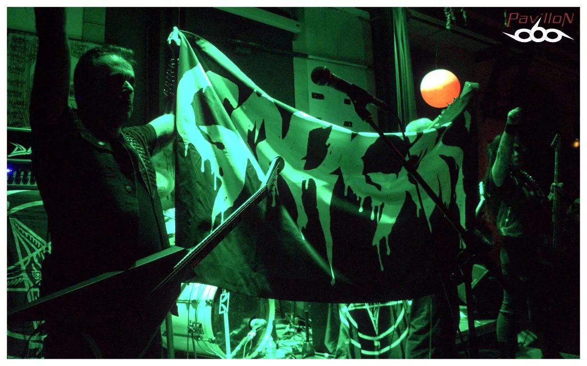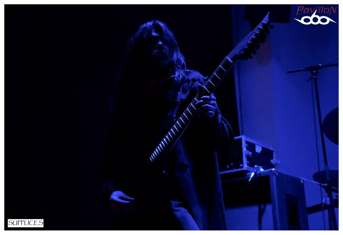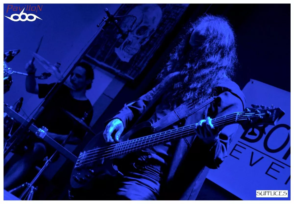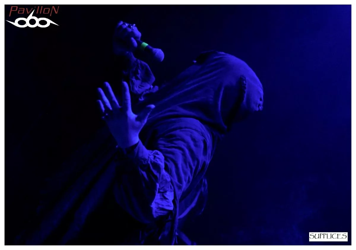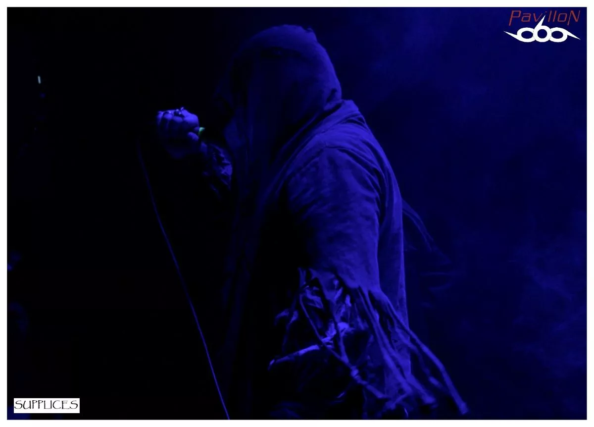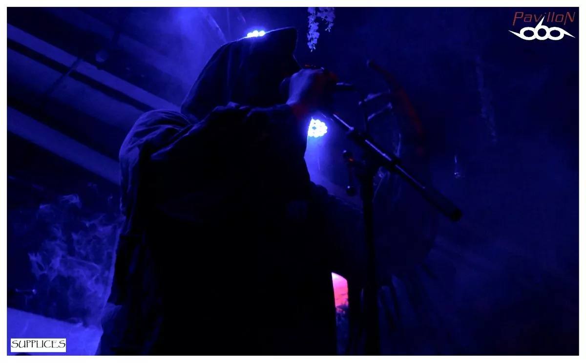Changement d’ambiance : après les hauts-voltages d’OBSESSION, c’est SUPPLICES qui a pris place sur l’estrade de la “Brasserie BOS” avec un black metal mélodique sombre, déchirant. Le quatuor nous vient d’Occitanie et a sorti son dernier album “De l’infâme et du trépas” en 2026 sous le label “Chapitre XIII”. Ils ont amené avec eux l’ombre et la désolation avec leurs titres qui vous attrapent sans vous relâcher. Des morceaux hurlants, presque vivants, un chant à vif, des mélodies magnifiquement pessimistes, un voile de fumée accompagne l’ensemble, une scénographie efficace parée d’un bleu aussi sombre que les profondeurs des fonds marins, une énergie presque occulte s’est faite ressentir au sein de l’édifice.