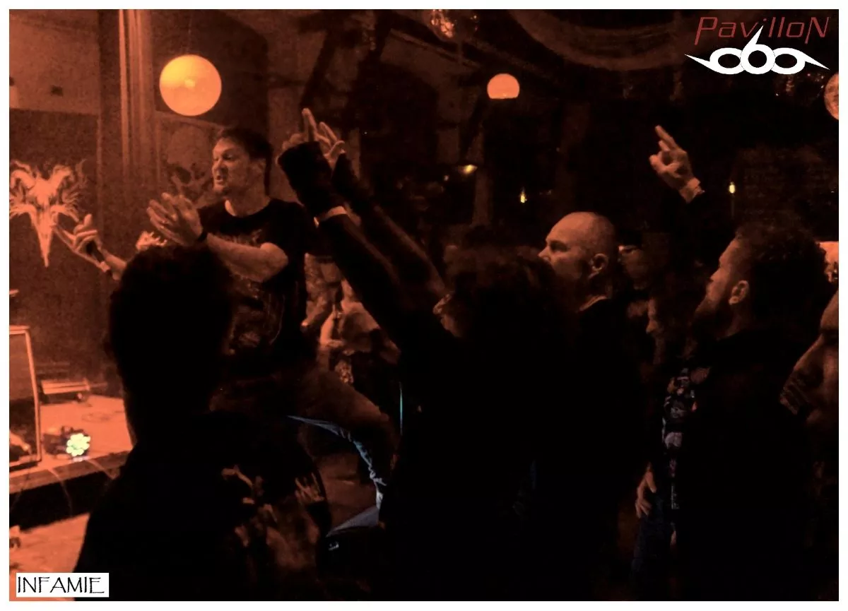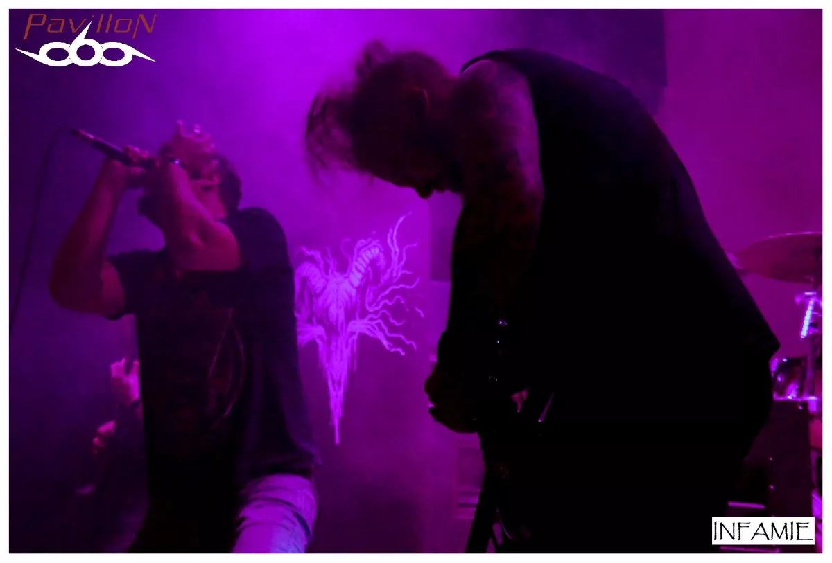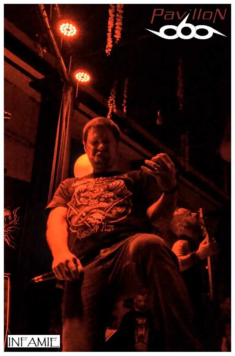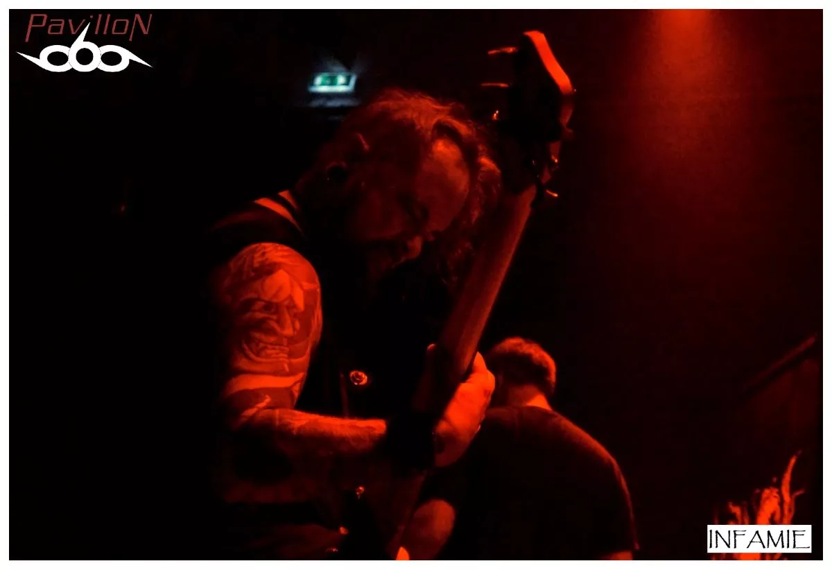 Ils ont été suivis de près par INFAMIE qui nous vient du Centre-Val de Loire avec un black/death metal qui a les crocs, pas venu pour plaisanter. La formation est forte de deux EP, le mortel “Into The Necrosphere” sorti en 2023 et le mastodonte “Of Sulphur And Pestilence” sorti en 2025. De l’énergie brutale, il y en a eu sur scène, ils n’étaient clairement pas là pour enfiler des perles, des riffs sous tension, un chant impressionnant qui vous bouscule, une batterie qui n’est pas là pour vous bercer mais pour vous rouer de coups par ses enchainements brutaux. Une énergie mortelle s’est faite ressentir sur scène, si le sol avait pu se briser, je crois que c’était le moment. Bravo pour ça, INFAMIE.