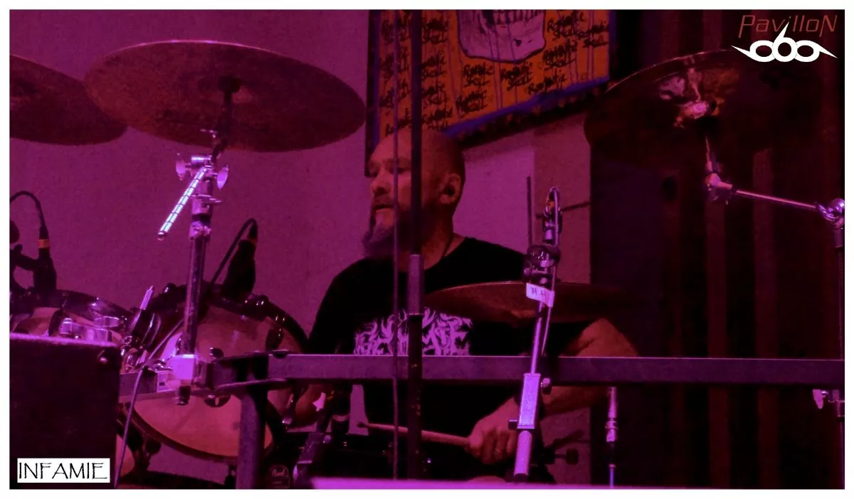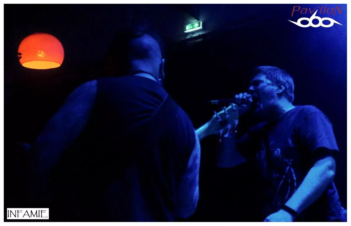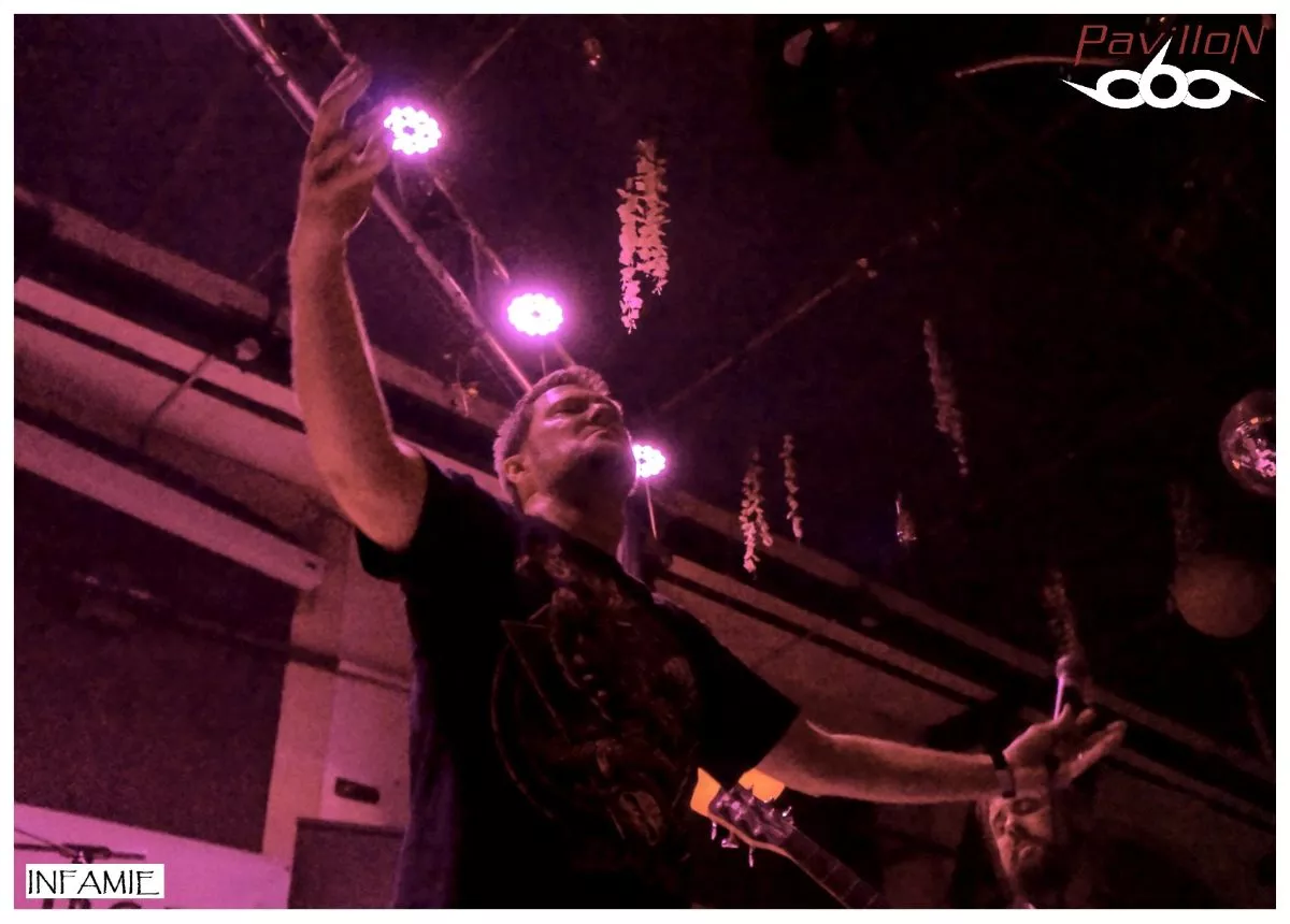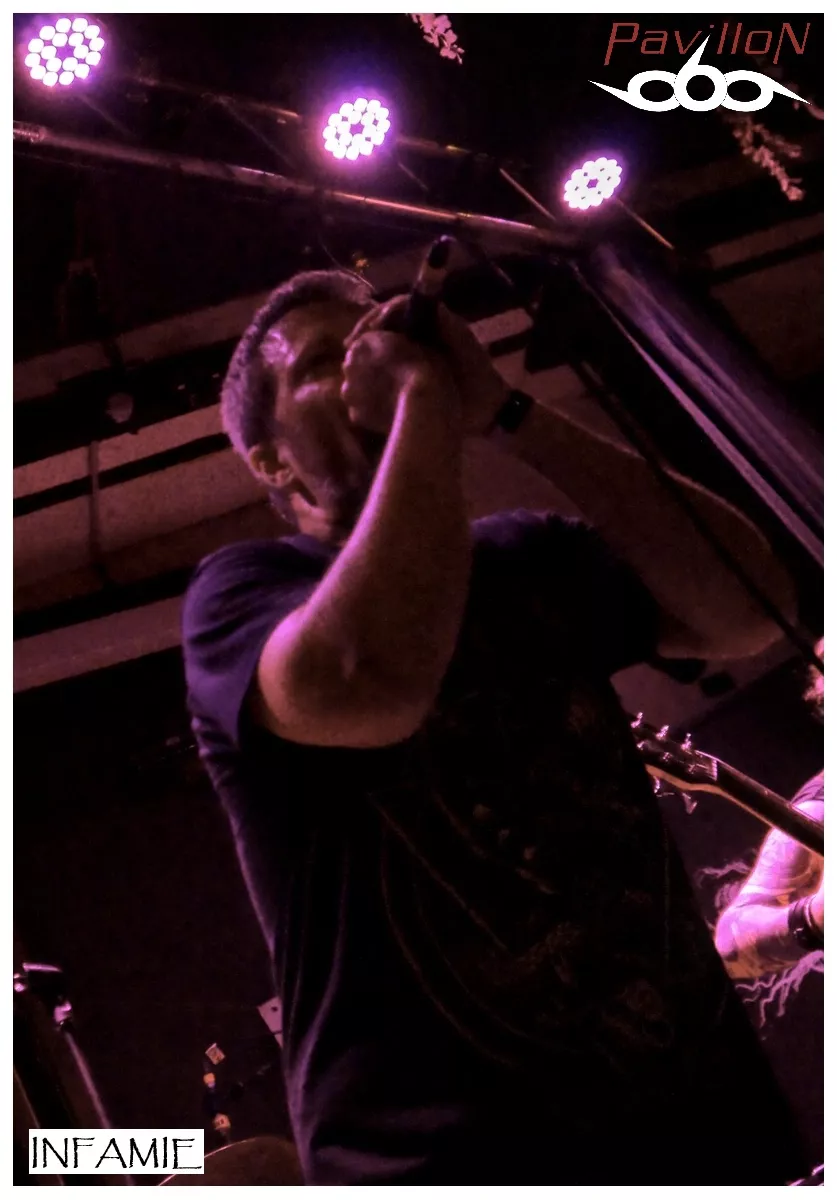 Ils ont été suivis de près par INFAMIE qui nous vient du Centre-Val de Loire avec un black/death metal qui a les crocs, pas venu pour plaisanter. La formation est forte de deux EP, le mortel “Into The Necrosphere” sorti en 2023 et le mastodonte “Of Sulphur And Pestilence” sorti en 2025. De l’énergie brutale, il y en a eu sur scène, ils n’étaient clairement pas là pour enfiler des perles, des riffs sous tension, un chant impressionnant qui vous bouscule, une batterie qui n’est pas là pour vous bercer mais pour vous rouer de coups par ses enchainements brutaux. Une énergie mortelle s’est faite ressentir sur scène, si le sol avait pu se briser, je crois que c’était le moment. Bravo pour ça, INFAMIE.