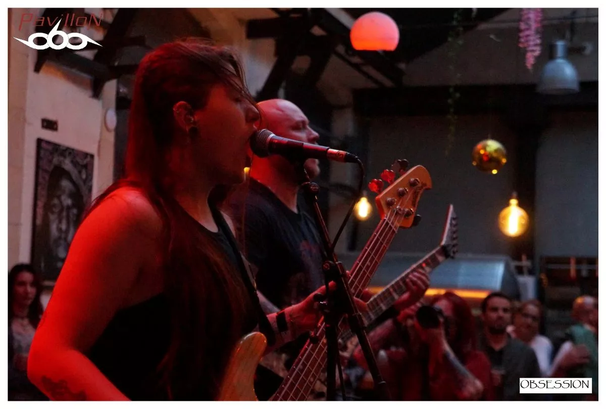 C’était la première fois que je les voyais performer, j’ai été happée par l’énergie du groupe et de sa front woman. Les morceaux composés de riffs électriques, épiques, des solos de guitares ici et là, les mélodies arborant un voile heavy, le chant puissant de sa chanteuse, la batterie tantôt sévère tantôt enjouée donnent l’intention des titres. C’est une très belle découverte, la formation est solide, une très belle ouverture pour cette deuxième soirée de festival en entrainant avec eux le public.
