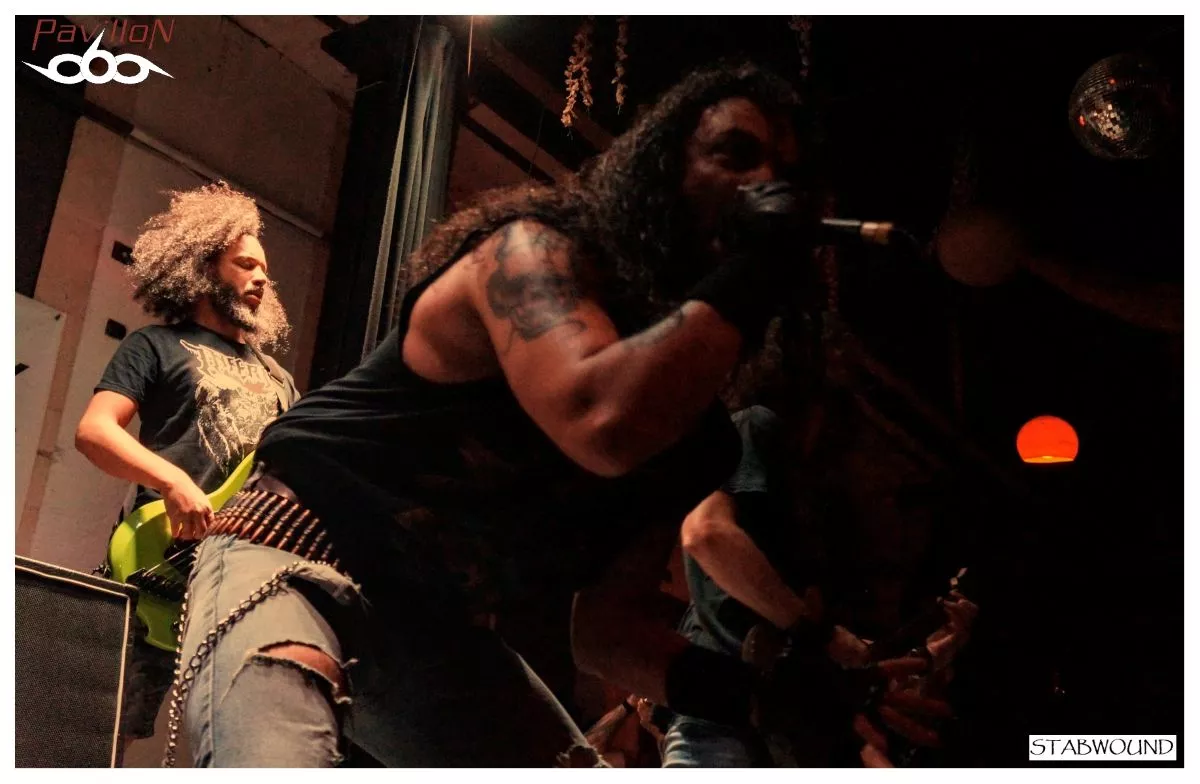 Gardons les surprises, puisque on a eu là encore un changement d’ambiance drastique, puisque c’est STABWOUND qui a bondi, occupant à leur tour le “Berry Metal Fest”. La formation nous vient de Rouen et ils ont pour habitude d’apporter avec eux leur death metal incisif, tout comme ce soir-là. Le groupe est né en 2007 et a sorti son album “As Humanity Dies” en 2024. Le groupe sait occuper l’espace et lancer quantité de pogos, une énergie folle se dégage de la scène. La basse donne un impact assez groovy à l’ensemble sur certains morceaux, ce que j’apprécie particulièrement, les riffs de guitares sont bondissants, le chant du frontman est roc, résonnant, la batterie donne de l’élan à l’ensemble, tout y a parfaitement sa place. J’ai adoré pouvoir écouter leurs titres en live.