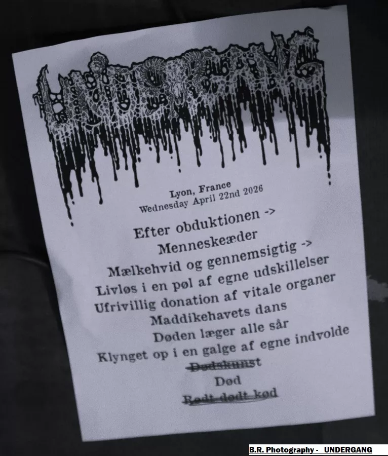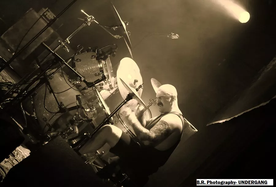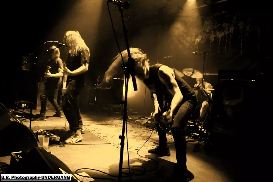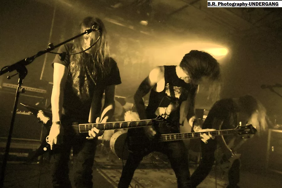 Avec les Danois d' UNDERGANG ça va aller très vite d'entrée de jeu pour les premiers envois où les musiciens s'envoient en l'air à l'aide de leur death labellisé grindcore à l'envi.