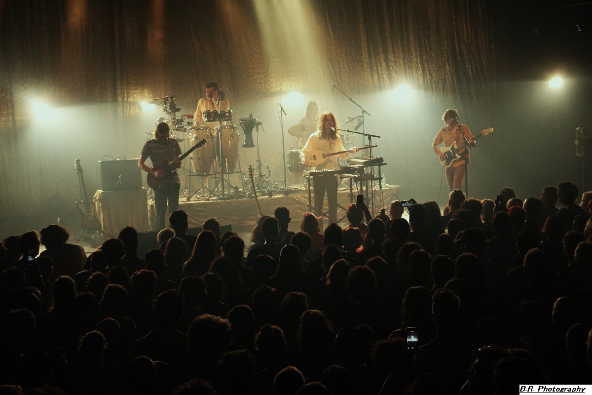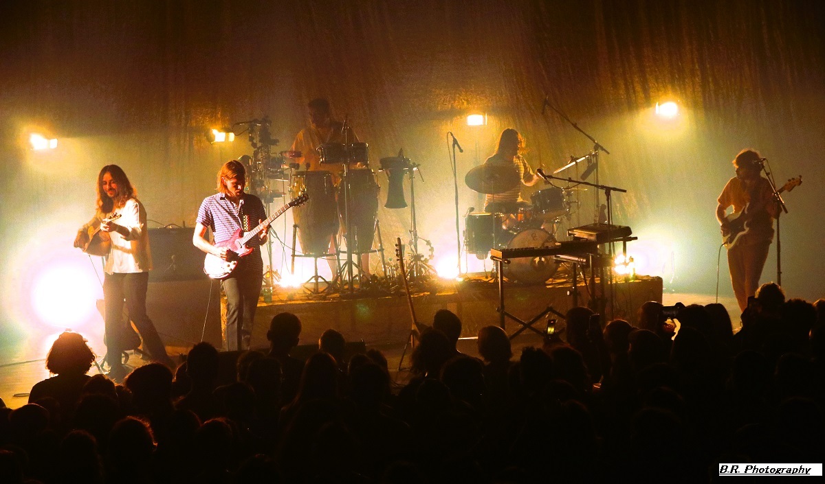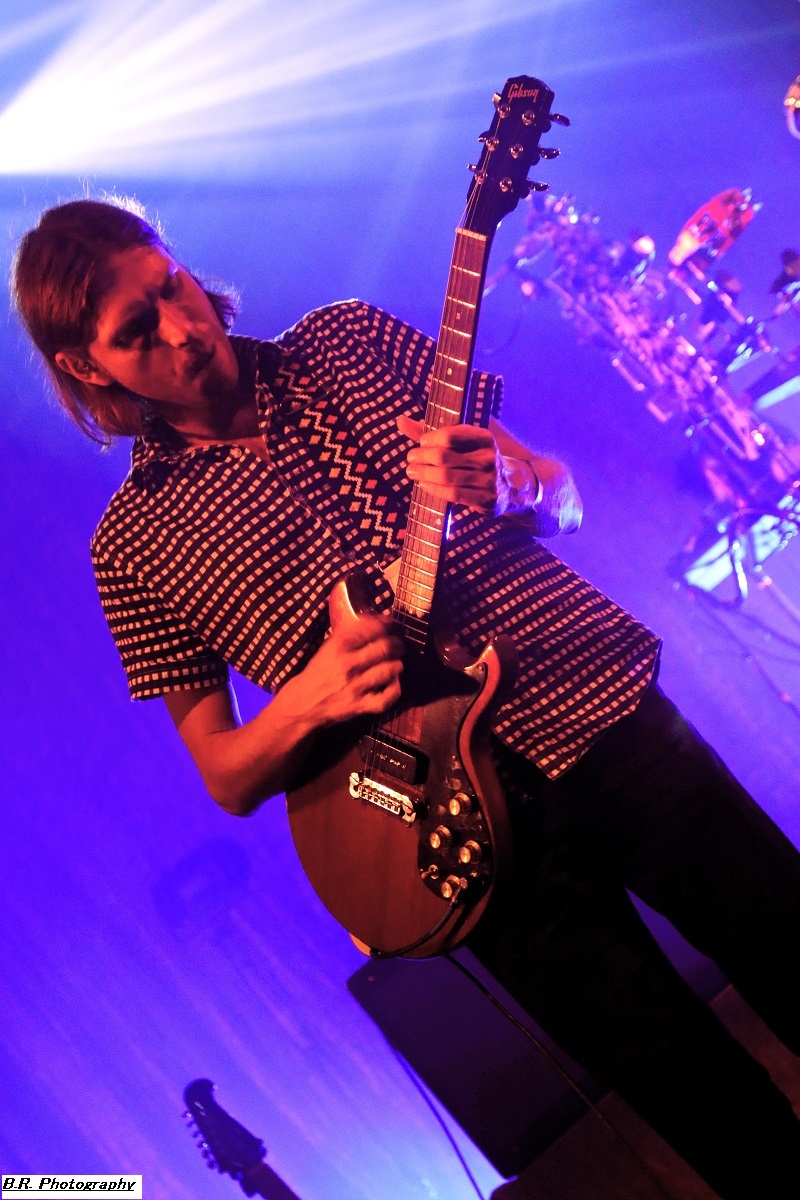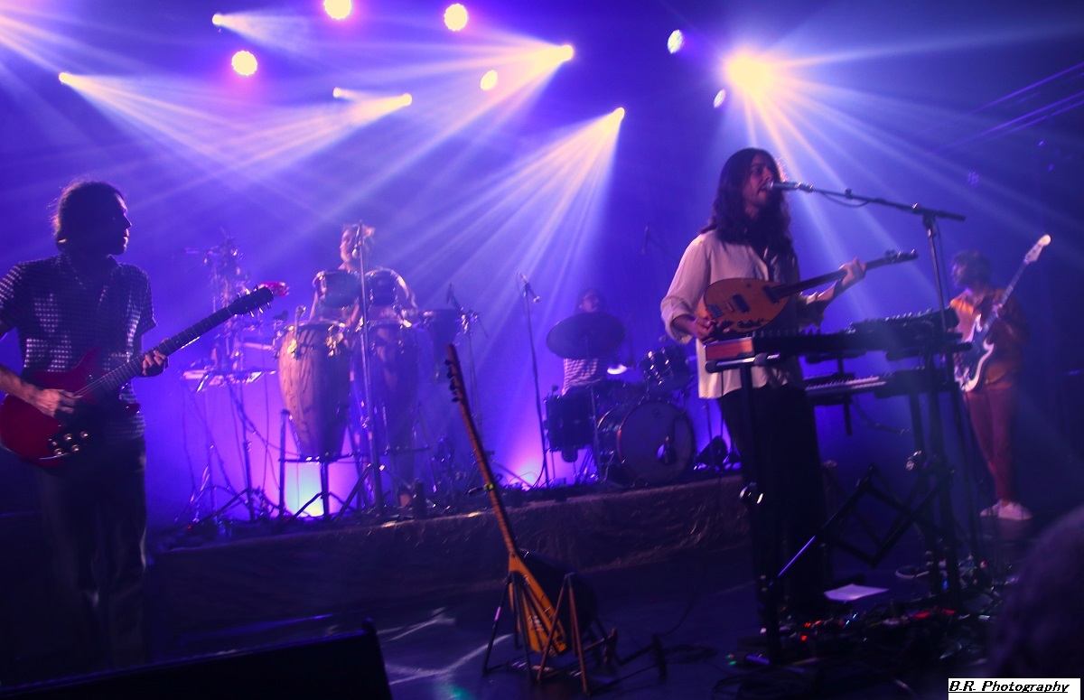 Dès 20 heures 30, MANTA envoie le son, et quel son, bien plombé et envoûtant sous des lights nous invitant au voyage psychédélique. Un premier EP intitulé « Quicksand » paru en Octobre dernier est en quelque sorte la carte de visite de ce groupe emmené par un Maxence Grinoz nous proposant des envolées pénétrantes aux soli tortueux pour un certain flash-back dans la vague aventureuse du rock des seventies. Leur prestation épicée par un binaire bien présent sous la houlette d'un duo basse/batterie remarqué et de guitares miaulant à l'envi mettant en valeur les textes un tant soi peu mélancoliques du frontman. Bref, je fus agréablement surpris par leur set de 45 minutes qui semble avoir conquit un public de connaisseurs en la matière e mais aussi les autres... C'est au tour maintenant d'apprécier le concert des 5 musiciens composant ALTIN GÜN, formation turquo-néerlandaise basée à Amsterdam, Pays-Bas, musiciens qui vont évoluer sur la grande scène des lieux. Pour ceux qui ne connaissent pas encore Altin Gün nous dirons que ce groupe représente actuellement le mouvement psychédélique turc qui a connu un certain âge d'or durant la période de fin des sixties et du début des seventies. Devant nous des musiciens développant un son particulier à l'aide d'instruments variés classique du rock avec aussi instruments folk anatoliens et puis aussi orgue vintage et bongos qui renforcent une batterie bien mise en avant sur des rythmiques « funky » bien souvent. Leur dernier album en date « Ask » paru en mars 2023 renforce l'album « Gece » de 2019 nominé aux Grammy Awards. L'ambiance instaurée se révèle variée, hypnotique avec ce mix rock/folk oriental assez retro mais au final bien rock avec ses parties guitaristiques bien présentes pour du binaire psychédélique au groove imparable. La musique de ce groupe se révèle donc très convaincante en live comme ce soir avec pour ma part une découverte très appréciée. Merci à l'Epicerie Moderne pour l'accréditation/pass photo accordée à Pavillon 666 et merci aux deux formations en lice qui ont donné ce soir le meilleur d'eux-mêmes ! |