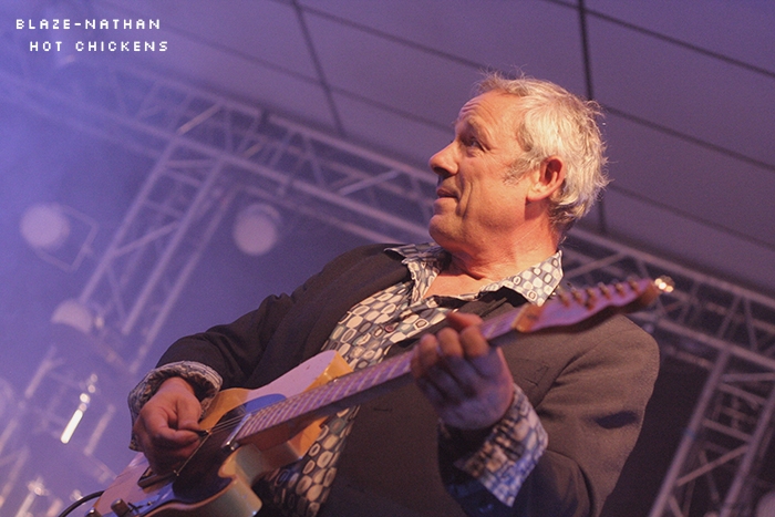 Le frontman ne cache pas son admiration pour Johnny Burnette et pour Buddy Holly où nous le verrons chausser des lunettes à grosses montures pour le titre « Rave On », un must. Et puis, le trio va plus loin dans les acrobaties, chanteur en stage-diving, invitation de demoiselles sur scène et d’un bassiste improvisé. On ne s’est donc pas ennuyé pendant le set des HOT CHICKENS, set très chaud évidemment.