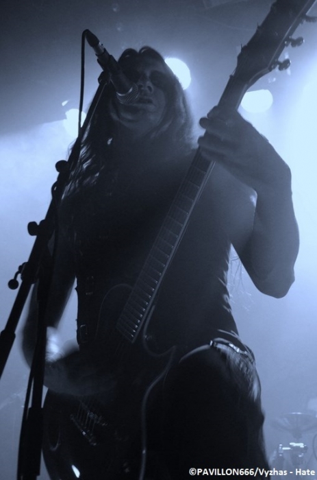 C’est devant un public épars que les norvégiens d’Iskald démarrent les hostilités. Formé en 2005, la formation a déjà 4 albums à son actif, dont le dernier « Nedom og Nord » sorti en janvier dernier. Le quartet délivre son black/thrash mélodique. Le public se contente de timides hochements de têtes, il faut dire que les norvégiens sont carrés, mais le set est trop statique : manque de motivation ou attitude timorée de la formation ? Peut-être un peu des deux, mais en tout cas leur black mélodique ne m’a pas convaincu. La musique d’Iskald est à mon sens trop convenue et manque de passages marquants et pêchus. Le set se clôture très poussivement, en espérant que le prochain groupe va réveiller un peu la salle… C’est au tour de Velnias de monter sur les planches du Nouveau Casino. Le quartet du Colorado propose un black/folk atmosphérique aux accents doom. Et là c’est le coup de grâce… Dans le mauvais sens du terme. Après un Iskald mollasson, Velnias est complètement soporifique ! Non pas que je remette en question la musique des américains (au demeurant de qualité pour les fans de ce style…), mais soyons honnêtes c’est d’un ennui mortel, les morceaux sont interminables, les musiciens ne bougent pas d’un centimètre carré, ou se mettent constamment de dos (sympa pour les photos…). Les morceaux excessivement longs, les riffs sans vigueur ont eu raison d’un public déjà comateux. Allez, au suivant ! La salle se remplie d’un seul coup lorsque les polonais de Hate débarquent sur une scène habillée des drapeaux à l’effigie du huitième album « Solarflesh : A Gospel of Radiant Divinity ». Hate va réveiller tout le monde à coups de matraquages de riffs brutaux. Souvent qualifiée de « Behemoth du pauvre », la formation livre en effet un death peu intéressant sur CD, mais qui prend toute son ampleur en live, surtout après deux sets sous Valium. Sous le cuir, les clous et le corpse-paint, la joie des polonais est tout de même palpable et communicative. La profondeur et la limpidité du son mettent parfaitement en valeur tous les instruments du quartet. Hate dégaine ses missiles de guerres sans répit, molestant le public de ses riffs mitraillettes ultra accrocheurs et de blasts rouleau compresseur. Adam, le frontman ressemblant physiquement et vocalement à son compatriote Nergal de Behemoth, harangue la foule, lui ordonnant de tout détruire, cette dernière ne se fera pas prier, puisque les premiers pogos de la soirée commencent à faire leur apparition. La prestation des varsoviens se termine sous une salve d’applaudissements. Le set fut violent, sans temps morts et ultra-rôdé… Un set de death made in Poland en somme ! Setlist : • Omega • Erebos • Resurrection Machine • Hex • Wrists • Festival of Slaves • Alchemy of Blood • Sadness Will Last Forever • Luminous Horizon Hate a mis la barre très haute. Kampfar va avoir fort à faire pour ne pas se laisser voler la vedette par les polonais. Challenge accepté par les norvégiens ! Après une intro folk aux sonorités fantomatiques, la horde emmenée par le charismatique frontman Dolk est lâchée. Le set démarre sur le massif « Mylder », le son est plutôt clean, même si la guitare d’Ole Hartvigsen manque un peu de punch, sûrement dû à la basse vrombissante et imposante de l’intimidant Jon Bakker. Le public se déchaîne sur les titres cultes de la formation tels que « Troll, Død Og Trolldom » ou encore « Hymne ». En véritable gourou enragé, Dolk contrôle la foule qui lui mange dans la main. Le grand blond, pour qui le temps ne semble avoir aucune emprise, n’a rien perdu de son charisme habituel en vingt années de carrière, se démenant comme une furie sur scène avec ces impressionnants bracelets cloutés. Les norvégiens sont visiblement heureux d’être ici ce soir, l’énergie déployée par le leader et son large sourire en sont des preuves évidentes. Dolk se fendra de quelques mots en français. Il dédiera d' ailleurs le morceau « Ravenheart » à Marianne (alias LSK) décédée en octobre dernier et bassiste de Secrets of the Moon ayant ouvert pour Kampfar et Vreid au Nouveau Casino en 2011. Les morceaux du dernier album passent également très bien l’épreuve du live à l’image de l’épique « Swarm Norvegicus » ou du grandiose « Our Hounds, Our Legion ». C’est les muscles saillants, le torse et les cheveux trempés que Dolk revient avec ses acolytes pour un rappel avec le culte « Norse » qui terminera cette soirée en beauté devant un parterre de fans conquis ! Il nous reste à remercier Garmonbozia pour cette superbe date. Kampfar et Hate ont démontré tout leur savoir-faire dans deux registres différents. Après deux premières parties assez moyennes, le black pagan et le death polonais ont asséné une raclée monumentale sans laisser de survivants ! Setlist : • Mylder • Troll, Død Og Trolldom • Swarm Norvegicus • Lyktemenn/Till Siste Mann • Vettekult • Altergang • Ravenheart • Hymne • Our Hounds, Our Legion • Encore: • Norse |