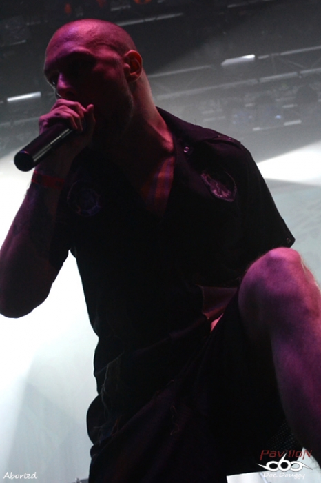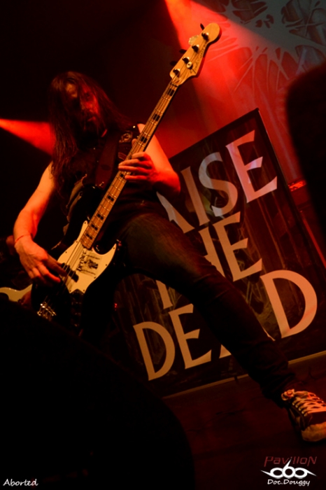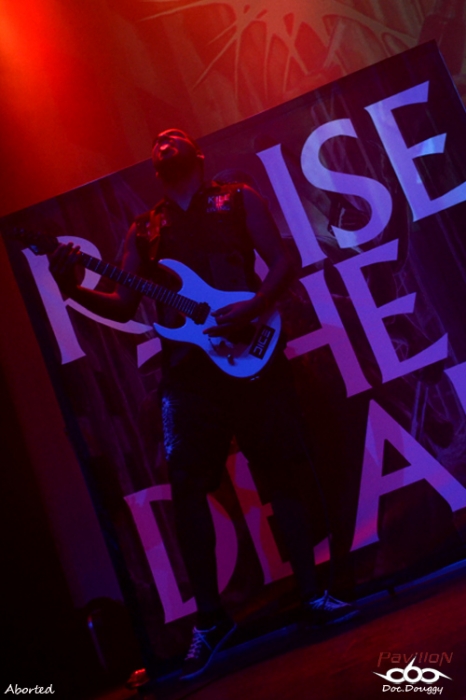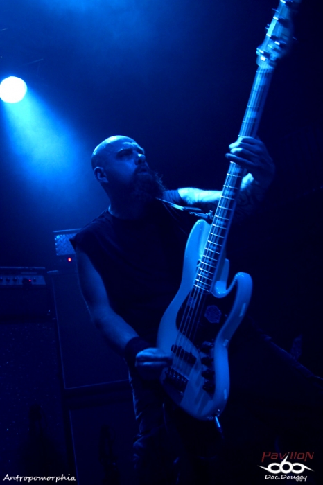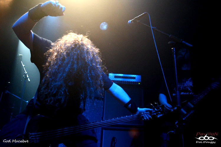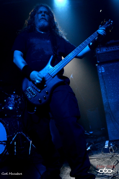 Au programme cette année en vrac de bonnes surprises, quelques déceptions, mais surtout du Death metal dans tous les sens avec la présence d'icônes tels que MASSACRE, TERRORIZER, SUFFOCATION ou CANCER, mais aussi du Gore/Grindcore avec BRUTAL TRUTH, GUTALAX, SPASM, LOCK UP et du Brutal en veux tu en voilà avec PROSTITUTE DISFIGUREMENT, CEREBRAL BORE, CEPHALIC CARNAGE ou encore SEVERE TORTURE. Et en parlant torture, le non initié peut en prendre pour son grade ! A noter tout de même qu'il y a moins de groupes que l'an dernier, et que pour cette édition on commençera les hostilités à 18h et non pas 17h... Un grand merci d'ailleurs à Century Media qui offrent aux premiers arrivés une petite compile de leurs dernières sorties, mais par contre pas de Jack Daniel's côté invités... (zut alors !) Bref, trèves de bavardages, c'est parti pour mon petit retour sur ces 3 jours de folie ! Rapidement je retrouve mes marques, comme à son habitude deux stages ouvertes seulement pour ce vendredi. Le temps de choper ses jetons, de trinquer avec les potes, et direction la Main pour le groupe qui ouvre le bal : DECEASED. Et l'air de rien on commence avec du gros car c'est ni plus ni moins que le 1er groupe à avoir signé chez Relapse (quand on connaît la réputation du label maintenant !). Entre rythmiques death/thrash, voire passages limite crust sur les bords, le combo ricain envoie ce qu'il faut pour mettre en condition. C'est brut de décoffrage, autant certains titres sonnent old school, mais les 30 minutes accordées prouvent que le quatuor à su se renouveller au fil du temps (formé en 86) et propose aujourd'hui une setlist qui me semble axée sur leurs dernières réalisations. Une figure du genre, qui plus est qui assure, comment commencer mieux ? Le public n'est pas encore à son comble lorsque DECEASED quitte la scène, et le temps de sortir de la salle et de faire quelques mètres, que j'entend déjà vrombrir les murs de la Second... ANTROPORMORPHIA, combo local que j'avais entraperçu l'an dernier et habitués pour maintenant du fest avec pas moins de 4 apparitions... Du Death lent et lourd, tout le contraire de ce que j'ai vu auparavant. Lights bleux et fumée collent bien à l'ambiance du quintette livide dont il reste difficile d'aperçevoir le visage de leur chanteur/guitariste. Plutôt intéressant sachant qu'ils se sont reformé il y a 5 ans maintenant, il serait peut-être temps de se pencher sur leur dernière réalisation "Evangelivm Nekromantia". Ca casse un peu l'ambiance, ou ça repose selon les personnes car après ça blaste et ça enchaîne ! Hop, déjà 19h, Mainstage oblige, car même si j'ai l'impression de les voir tous les ans (et c'est le cas pratiquement) ça reste toujours un plaisir de voir ABORTED en "live", d'autant qu'ils ont un petit nouveau à nous présenter: "The Necrotic Manifesto". Beaucoup plus brutal que son prédécesseur, il doit avoir de quoi envoyer dans les esgourdes ! D'ailleurs c'est avec celui-ci que l'on commence (vu que je reconnais pas encore le titre ...), puis comme à son habitude, retour sur "Goremageddon" avec "Meticulous Invagination" enchaîné de "Sanguine Verse (...of Extirpation), deux morceaux issus de "Global Flatline" ("The Origin of Disease","Expurgation Euphoria") et histoire de terminer les paires, deux issues d'"Archaïc Abattoir" ( .... ). Le line-up qui gravite autour d'un Sven qui ne change pas ses habitudes à l'air de prendre de bonnes marques tout comme à l'OEF l'an dernier ainsi qu'au Motocultor... Une bonne prestance, rien de plus pour les 30 minutes qui leur sont accordés, mais qui verra naître les premiers pogos et circle, tandis que depuis le début d'après-midi, on voit des chevelures s'agiter... J'ai pas encore pris le temps de parler du son des groupes jusque là, car on a pas encore eu de problèmes, si l'on excepte une guitare un peu en retrait pour Mendel... Et là maintenant, il va être l'heure de danser ! Avoir deux groupes sur trois des plus gros groupes tchèques à l'affiche c'est déjà bien, puis quand on sait que deux d'entre eux font du Goregrind, c'est encore mieux et ça promet des bonnes parties de rigolade ! Le premier d'entre eux SPASM fait du "Gigolo Drum'n Bass Goregrind". "Gigolo" pour son chanteur, Radim, "Drum'n Bass" pour ces deux musiciens, qui jouent sans guitare. Du gras et cradingue, en veux-tu en voilà ! Alors que leur popularité n'est pas négligeable dans les pays de l'Est, elle commence à pointer le bout de son nez (ou autre chose hein pour ne pas paraître pervers auprès de ces dames.. ). Dans la veine de Gronibard par chez nous, on relâche la technique et on met l'efficacité en avant ! Radim, leur chanteur possède tout le charme des pays de l'est : Une centaine de kilos, un justaucorps une pièce (style Borat), un chant digne d'un cochon qu'on égorge et un nouveau masque ! Il a laissé de côté son masque en latex sadomaso/tête de cochon (qu'il enlevait les trois quarts du temps au bout de quelques titres) pour un masque lui cachant les yeux et un nez de forme très phallique (jugez les photos). Ca donne le ton ! Plus porn que gore, le trio fait danser, circle pit à foison et pour la première fois au Neurotic, les gens montent sur la stage pour se jeter tour à tour dans le public. Je suis plus aux Pays-Bas mais en Rép.Tchèque ! Ambiance "friendly" à souhait, confettis et carnaval, il ne manquerait plus que les serviettes et c'est un concert de Patrick Sébastien sauce "porn" ! Et ça vient de loin pour venir les voir, la preuve en est de ces deux petites japonaises au premier rang affublées de leur t shirt "OEF Asia" et comme tout bon Japonais (oui cliché quand tu nous tiens), prennent de jolies photos avec leur smartphone customisée, c'est pas tout mignon ça ?! Bref, SPASM dans le coin c'est pas tous les jours, maintenant faut que les petits organisateurs que certains d'entre nous sommes arrêtions de les bouder, pour qu'ils viennent en F