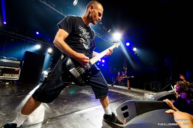 Organisé par une bande de passionnés de musique, ce festival se veut convivial et bon enfant. Durant les trois jours, deux scènes accueillaient des artistes de tous styles. Des stands d’activités étaient aussi présents pour divertir tout un chacun (buvette comprise). Le samedi et dimanche proposaient un programme plutôt familial avec Didier Wampas, Sergent Garcia ou encore lesNeg' Marrons. Mais certains me demanderont : à part la buvette, en quoi cela concerne-t-il Pavillon 666 ? Et bien il suffisait de regarder la programmation du vendredi pour faire dresser la crê-crête du punk qui sommeil en vous. Un jeune groupe très pêchu pour ouvrir le bal : Enemy of The Enemy. Venait ensuite la fanfare de LosTres Puntos et leur ska inspiré. Mais les véritables hostilités ont commencé avec Les Sales Majestés, suivis de près par les infatigables papys rockers de Parabellum. Puis pour finir en beauté, les inséparables Tagada Jones et Lofofora. Rien que ça. C’est sous le plus petit des deux chapiteaux qu’un public timide s’approche aux premières notes du groupe Enemy of The Enemy. Des riffs incisifs, un rythme lourd et rapide, une voix profonde et imposante, le groupe a finalement attiré bon nombre les curieux. Naviguant entre le thrash et le hardcore à la fois, le quatuor dégage beaucoup d’énergie. Le guitariste, coiffé de longues dread locks, faisait tournoyer sa chevelure tandis que son collègue bassiste grimaçait en regardant la foule. Le batteur discret mais efficace donnait le tempo alors que le chanteur menait ses troupes d’une voix sure. Enemy of the Enemy est un groupe jeune mais prometteur. Je leur souhaite bien du succès s’ils continuent sur cette voie. Le premier set terminé, c’était au tour de Los Tres Puntos de prendre le relais sur la grande scène. Ce groupe mélangeant ska et punk à merveille a fait danser la foule une bonne heure sans faiblir. Leurs compositions étaient fraîches et entraînantes. La composition du groupe comprenait tous les instruments qu’un groupe de ska se doit d’avoir. Le quatuor batterie, basse, et deux guitare bien entendu, suivi par une trompette, un trombone et deux saxophones. Les deux guitaristes assuraient également la partie chant. L’un d’eux laissait parfois même sa guitare pour prendre un second trombone. Les huit musiciens échangeaient régulièrement leur place pour occuper toute la scène et seul le bassiste restait timidement en retrait. En plus de leurs compositions le groupe avait dans son répertoire quelques reprises dont un hommage aux Ludwig Von 88 (Les Sentiers de la Gloire) qui a semble-t-il séduit la foule. Pour ma part, j’ai beaucoup apprécié le clin d’œil. Le groupe nous quitte après une très belle prestation. Je ne peux que conseiller le groupe aux fans du genre et qui ne les connaissent pas encore. Bonne découverte pour ma part. La suite sera sur la même scène. Tandis que Les Salles Majestés se préparaient, je me suis promené pour découvrir un peu les lieux de ce charmant petit festival. En commençant par la buvette bien entendu. Puis en continuant très logiquement par les toilettes. Toilettes aménagées de façon originale. Une cabine installée dans une sorte de roulotte pour les demoiselles, et pour ces messieurs, des pissotières improvisées avec ce qu’on appelle dans notre jargon des « sodomètres ». Vous savez, ces instruments coniques, oranges avec des bandes blanches et qui servent à mesurer la capacité rectale, même si on les trouve souvent détournés de leur fonction principale pour baliser des chantiers par exemple. Mais je crois que je m’égare, et pas seulement d’Austerlitz. Alors revenons à nos keupons. Keupon un jour, keupon toujours. Les Sales Majestés seront de retour avec un nouvel album très prochainement. Et ils nous en ont donné un bel aperçu ce soir-là. Le ton reste encore et toujours le même. Prônant l’égalité et la révolution, dénonçant les abus de pouvoir et la mondialisation, le groupe a su mettre une ambiance déjantée durant tout son set. Mais la promotion de l’album à paraître ne les a pas empêchés de jouer tous leurs bons vieux tubes. De « Camarade » à « Halte auFront », en passant par « Sois Pauvre et Tais Toi » ou encore « Champ d’Honneur », c’est 25 ans de rétrospectives contestataires auxquels on a eu droit. Le public chantait la plupart de leurs titres à l’unisson tandis que les crêtes défilaient sur scène pour sauter dans la foule. Toujours aussi énergique, le groupe sait faire bouger ses troupes aussi bien qu’à ses débuts. Ça sentait le punk dans la fosse et la sueur aussi bien que la bière coulait à flots. Le seul bémol (c’est juste pour chercher la petite bête hein !) était l’absence de mobilité des musiciens. A part Arno au micro, les autres sont restés immobiles durant tout le set. On ne leur en veut pas pour autant. Le public, lui, s’en est donné à cœur joie. Après ce flot de propagande gauchiste (rien de péjoratif dans mes propos, que ce soit clair) il me fallait encore une bière pour oublier une vie pas si amère que ça finalement. Seul problème : Parabellum a commencé à la seconde où le set des Sales Majestés s’est terminé. Tant pis pour la bière, ce sera pour plus tard. Je tenais à ne pas rater Papa Schulz et sa troupe. C’est sur la petite scène donc que Parabellum a joué. Et autant dire qu’on était serré. Pas facile de s’approcher pour les voir de près. Schulz a passé son concert en jouant assis sur un tabouret, serait- ce l’âge qui commence à faire des siennes ? Je l’ai vu il n’y a pas si longtemps pétant la forme alors le coup du tabouret m’a interpellé. Sven le guitariste quant à lui était habillé de manière étonnamment sobre au regard de ses accoutrements habituellement plus extravagants. Quoi qu’il en soit, le groupe n’avait pas de nouvel album à présenter mais un changement de line