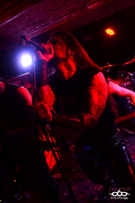Premier groupe de la soirée c'est HAST qui démarre les hostilités. Le financement participatif leur ayant de permis de presser un premier album éponyme à hauteur de nos espérances, il est maintenant l'heure pour eux de présenter celui-ci. Ce qui fait l'originalité du combo Lillois c'est bien la présence de son chanteur Fab, qui, délaissant les clichés Black metal, présente un chant plus typé "hardcore" et plus gueulé que les habituelles vociférations. Très présent, il n'arrête pas les allers retours entre la scène et le public (qui n'est pas encore très présent), quand il ne tourne pas le dos à celui-ci... Le son n'étant pas toujours le fort de la salle, celui-ci reste malgré tout bien équilibré et permet d'apprécier les compos entre parties qui rappellent Emperor, ou envolées plus "rock'n roll" à la Led Zep'. Ce ne sera bien sûr sans compter sur Max (Human Jail) qui viendra pousser la chansonnette avec eux sur "Projet 8" d'où l'on peut constater une belle complicité entre les deux chanteurs.