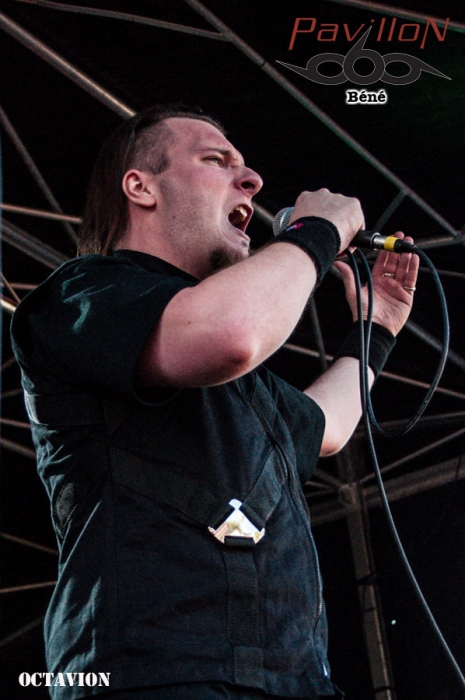 Pour ma part c’est forcément vers la scène métal que je me suis tournée. Le concert présentait, comme chaque année il faut le reconnaître, une très belle affiche : FRI3ND OF MIS3RY, OCTAVION, NO RETURN, DEW SCENTED et DECAPITATED. Le show commence donc avec les locaux de FRI3ND OF MIS3RY. J’étais assez contente de les voir en live, étant donné que j’ai tout juste terminé la chronique de leur album « Agents Pathogènes ». La curiosité quant à la manière dont ils pouvaient le défendre en live était grandissante. Je dois admettre que je n’ai pas été déçue. Fred (ex-Scarve) en bon frontman est omniprésent sur scène. Il fait partie de ces chanteurs « habités ». Il vit ce qu’il chante, ça vient des tripes. Une espèce de rage est plus que perceptible dans sa voix. Le public suit, et se bouscule gentiment. Musicalement c’est un peu plus brut que sur l’album mais ce n’est pas une critique négative, au contraire. Les autres membres du groupe ne sont pas en reste. Jean-Yves (ex-Mortuary) à la batterie se démène, il aime quand ça blaste et ça s’entend. Flavien (également membre de Benighted Soul) se déchaîne derrière son clavier et assure les chœurs. Enfin, Kryss, co-fondateur du groupe avec Fred nous livre de bons riffs tout au long du set, « habité » lui aussi. Leur énergie fait plaisir à voir et elle est communicative, en est pour preuve l’engouement du public tout au long de leur set de 7 chansons : 1. Arborescence 2. I comme… 3. Tesseract… 4. Ailleurs 5. Lésions hypothétiques 6. Agents pathogènes 7. Pluies acides Tu l’auras compris, après avoir adhéré à l’album, il en a été de même avec leur performance live. Arrive ensuite OCTAVION, groupe d’éléctro-indus métal. J’ai vraiment eu du mal à entrer dans leur univers. Ne nous méprenons pas, NexXiuM au chant est très bon. Les autres membres du groupe sont également doués dans leur domaine, en place et précis. Mais les parties éléctro ont par moment trop pris le dessus. Question de goût personnel bien évidement. L’influence de groupes tels que Rammstein est indéniable. Sur scène ça bouge, le public en redemande et semble apprécier la prestation du groupe. La Place du Luxembourg se remplit de plus en plus, et le public est vraiment motivé. Les membres de NO RETURN débarquent sur scène. Il me semble reconnaître un visage. Et en effet, Laurent, du groupe DEFICIENCY remplace ce soir le guitariste du groupe. Mick, le chanteur, expliquera d’ailleurs pendant le set que suite à un problème avec leur guitariste, Laurent l’a remplacé au pied levé et a appris tous les morceaux de la setlist en une semaine. Et chapeau l’artiste, car il a vraiment assuré. Le set commence avec Borderline, le public se masse devant la scène et manifeste son enthousiasme en se laissant aller à pogoter de bon cœur. Amateurs de Trash/Death metal vous voilà servis ! ça dépote grave. Que dire ? Mick passe habilement du growl au chant clair, Alain nous offre des solos impressionnants de précision à la guitare. C’est juste purement bon du début à la fin, j’ai même bravé les pogos et la foule pour t’avoir la setlist : 1. Borderline 2. Rising 3. Inquisitive Hegemony 4. News Item 5. Backdoor 6. Fanatic Mind 7. Virus 8. Lost 9. Vision of decadence C’est ensuite aux allemands de DEW SCENTED de prendre possession de la scène. A la base c’est DEATH ANGEL qui devait jouer mais suite à l’annulation de toute leur tournée (à l’exception du Hellfest), c’est donc DEW SCENTED qui a été choisi pour pallier à cette absence. Une chose est certaine ils sont contents d’être là, et le font savoir. Leif, au chant, s’adresse au public en français (excellent de surcroît) tout au long du set, ce qui, tu t’en doutes motive d’autant plus la foule. J’ai le droit à un joli sourire de Marvin (cf. Photos). Ils nous offrent un trash-death dévastateur, rapide et précis. Rory et Marvin aux guitares enchaînent soli et riffs enflammés. Partout où je regarde ça headbangue sévère. Une bonne petite claque. Les allemands interpréteront 8 titres : 1. Sworn to Obey 2. Turn to Ash 3. Bitter Conflict 4. Cities of the Dead 5. Soul Poison 6. Never to Return 7. Thrown to the Lions 8. Acts of Rage C’est le moment que beaucoup attendent, la tête d’affiche : DECAPITATED. Les polonais terminent leurs balances et le public se presse devant la scène. Autant te dire que là quand tu es tout devant la seule chose qui te traverse l’esprit c’est : « Mais comment je vais sortir de là ? » Mais peu importe, les polonais débarquent sur scène et là c’est l’euphorie totale dans la foule. Une présence scénique indéniable, de la masse capillaire qui headbangue, le ton est donné ! Rafal est sans cesse en mouvement mais le show est carré et précis. Le frontman et ses acolytes maîtrisent leur sujet. J’étais déçue de les avoir loupé au Lezard’os, mais je t’avoue que j’étais bien contente de les voir ce soir. Ils n’ont laissé aucun répit au public qui se déchaîne. Ils nous ont livré un show de 11 morceaux : 1. Lying and weak 2. Pest 3. 404 4. Way to salvation 5. Homo Sum 6. Day 69 7. Carnival is Forever 8. Flash-B(l)ack 9. Post( ?) Organic 10. A View from a hole 11. Spheres of madness C’est sur cette puissante prestation que se termine la soirée. Un grand merci à l’équipe de Damage Done Prod, et en particulier à Max pour leur gentillesse et leur accueil. |