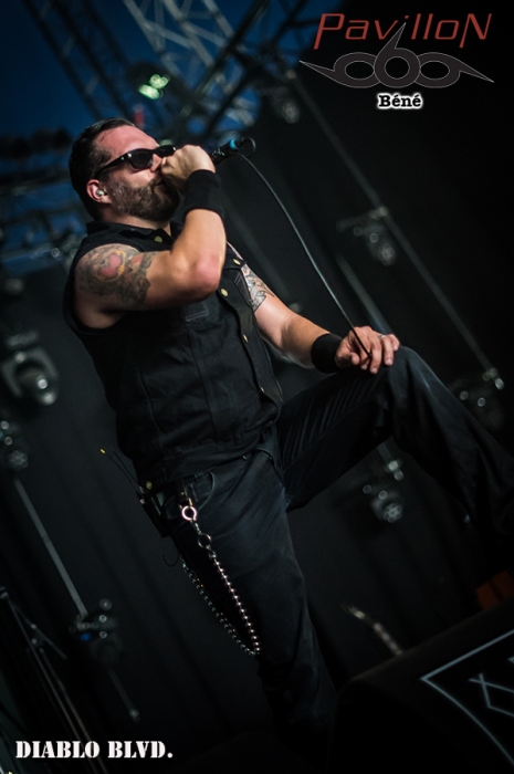 Dégoulinante de sueur (je te vends du rêve…), en raison des quasis 40 degrés dehors (imagine sous chapiteau avec la foule…), j’attends DIABLO BLVD.
