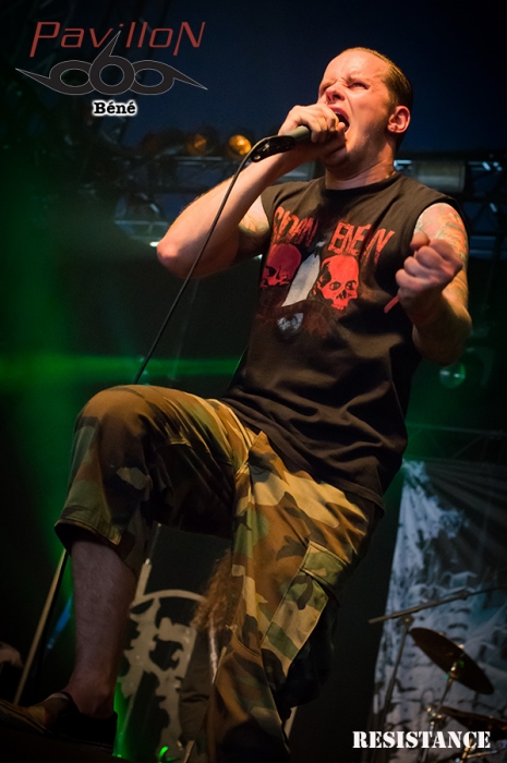 Pas vraiment le temps de se poser, les hostilités commencent avec les belges de RESISTANCE. Groupe que je ne connais pas (eh oui je ne peux pas tout connaître !). La couleur est annoncée c’est du modern death metal pour commencer cette journée, à nouveau sous une chaleur étouffante.